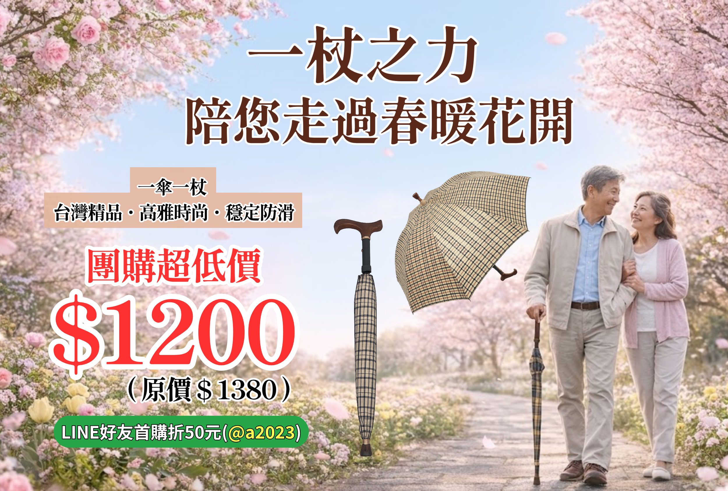 - 拐杖+雨傘二合一