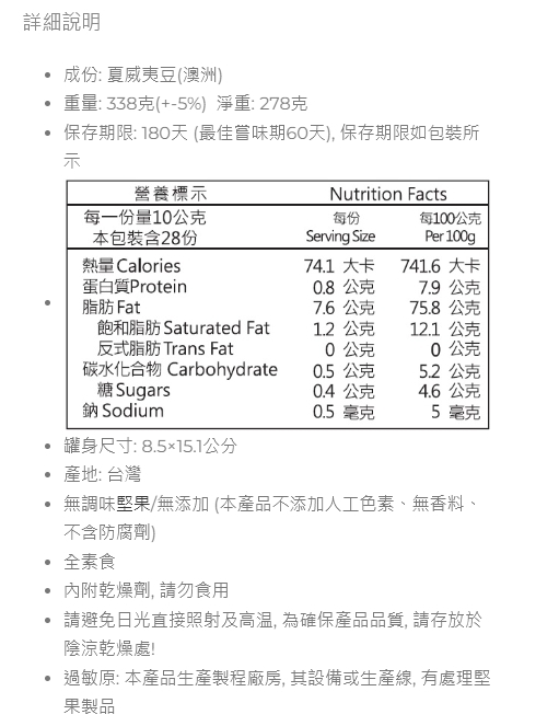我們特選澳洲新鮮無調味夏威夷豆,以低溫烘焙香氣,用時間讓夏威夷豆豐富的蛋白質、脂肪,礦物質和維生素完整保留,入口後有淡雅的奶香。低溫烘焙,才能成就每一顆夏威夷豆的飽滿與甜香,並完整封存營養。