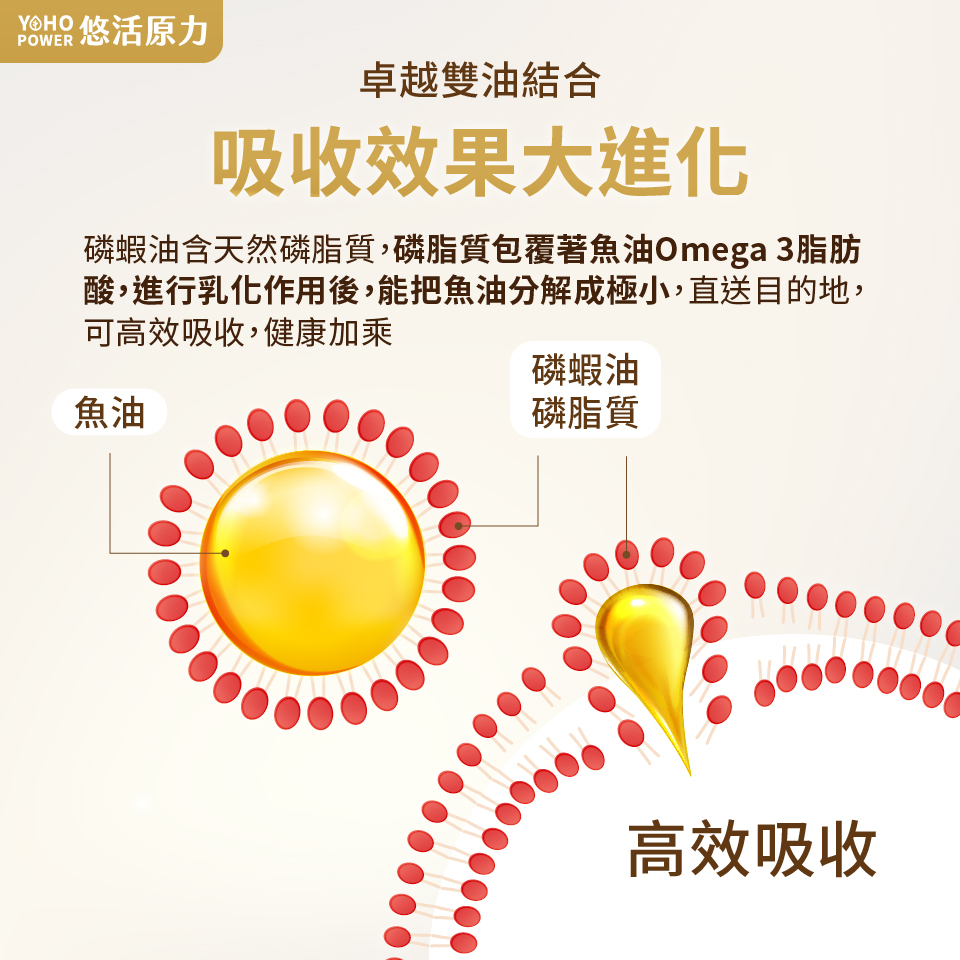 ● 磷蝦油含天然磷脂質,加強油Omega 3生物利用率