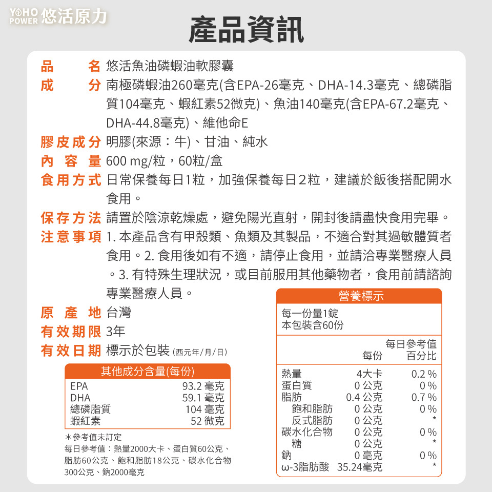 Q:如果已經食用悠活魚油+磷蝦油軟膠囊,還需要額外補充魚油或磷蝦油嗎?