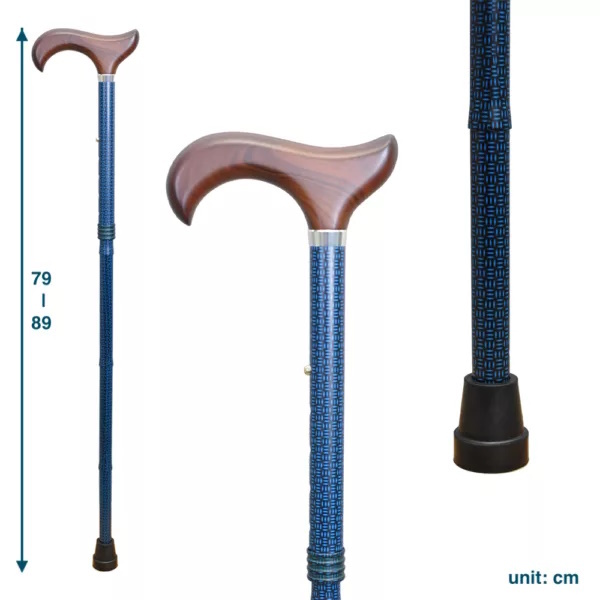 手杖設計有五個高度伸縮調整、適合多數人的身高。