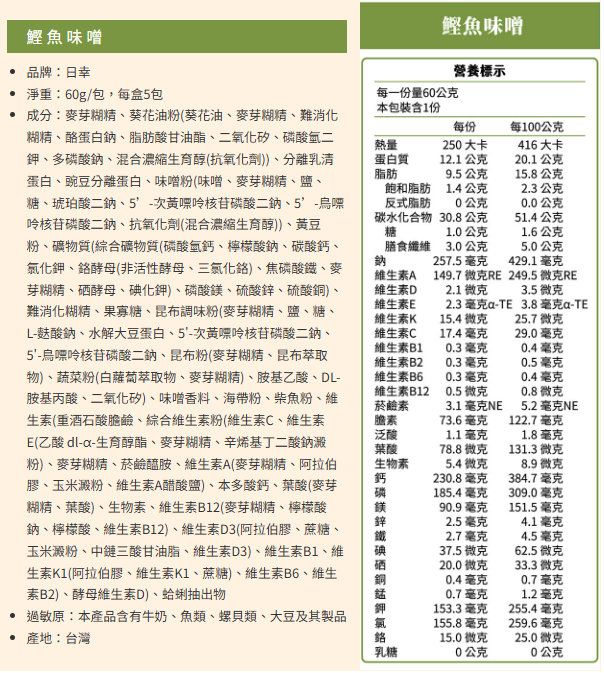 鰹魚味噌*1盒(缺貨,改為蒜頭雞湯)