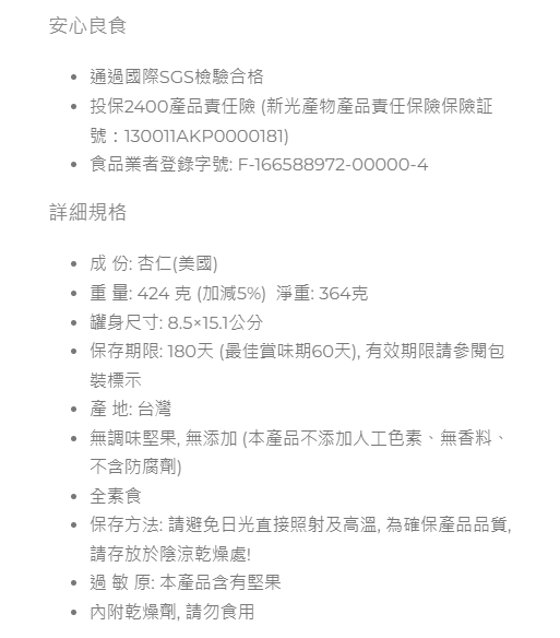 而我們從加州杏仁30多個品種中,只選擇最好的NP品種。因為珍貴,更要以職人之心,低溫烘焙,無調味堅果,才能成就每一顆杏仁的飽滿與甜香,並完整封存營養。