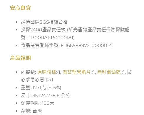 堅果海苔脆片: 極選鮮脆海苔,低溫慢烘;少了油炸,低了鹽鈉,沒有防腐劑。絕對是能讓全家老少都能安心品嚐的最佳零嘴。