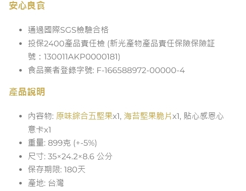 海苔堅果脆片: 極選鮮脆海苔,低溫慢烘;少了油炸,低了鹽鈉,沒有防腐劑。絕對是能讓全家老少都能安心品嚐的最佳零嘴。