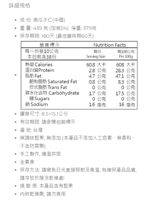 唯有真正新鮮飽滿的南瓜籽,才稱得上是綠色黃金!我們特選東北新鮮南瓜子仁,無調味堅果,以時間與低溫悉心烘焙,除了粒粒豐滿,入口香甜外,更是將南瓜子豐富的多種營養素以及人體所需重要的鋅完整保留,補充營養,就是如此簡單!