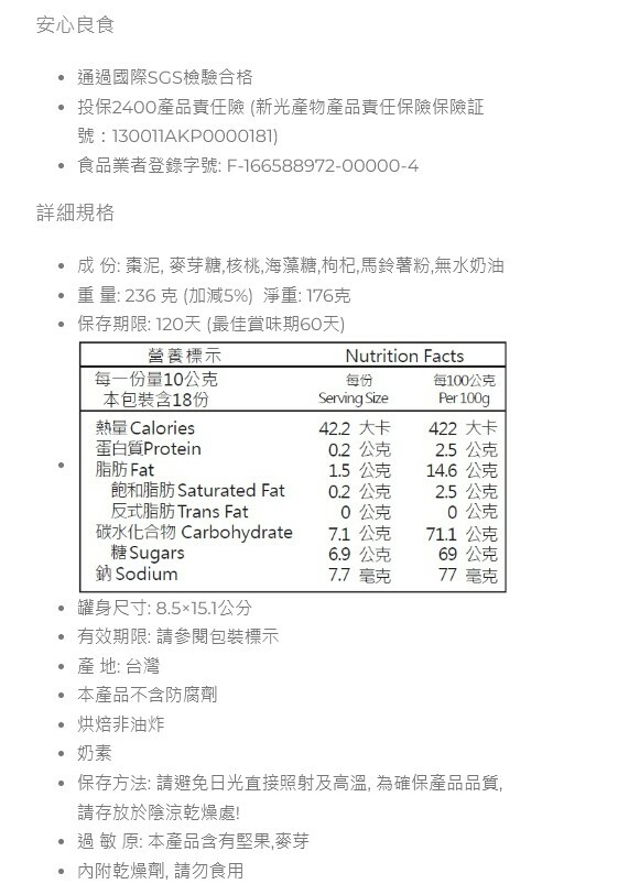 真材實料慢火熬煮,費時精煉棗泥伴入養生枸杞,搭配極品原味核桃,道地而養身,軟Q適中的彈牙距離,香氣四溢又不黏牙,絕對是能讓全家老少都能安心品嚐的最佳零嘴。