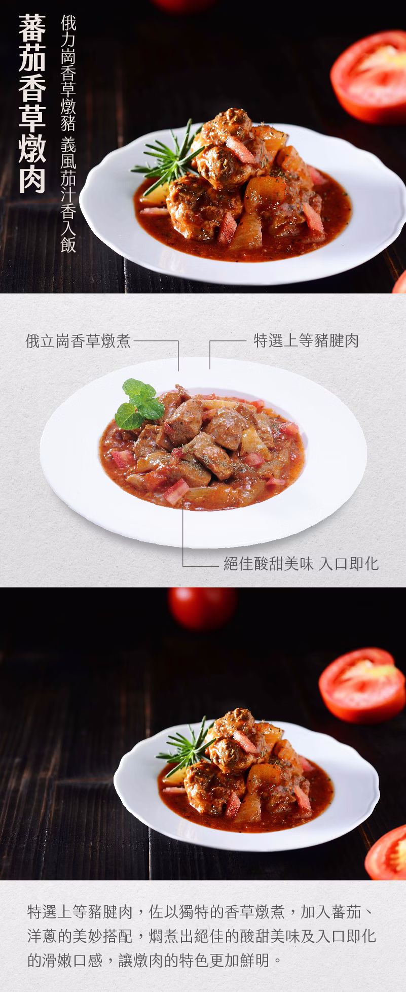 • 特選上等豬腱肉 佐以香草 蕃茄 洋蔥燉煮