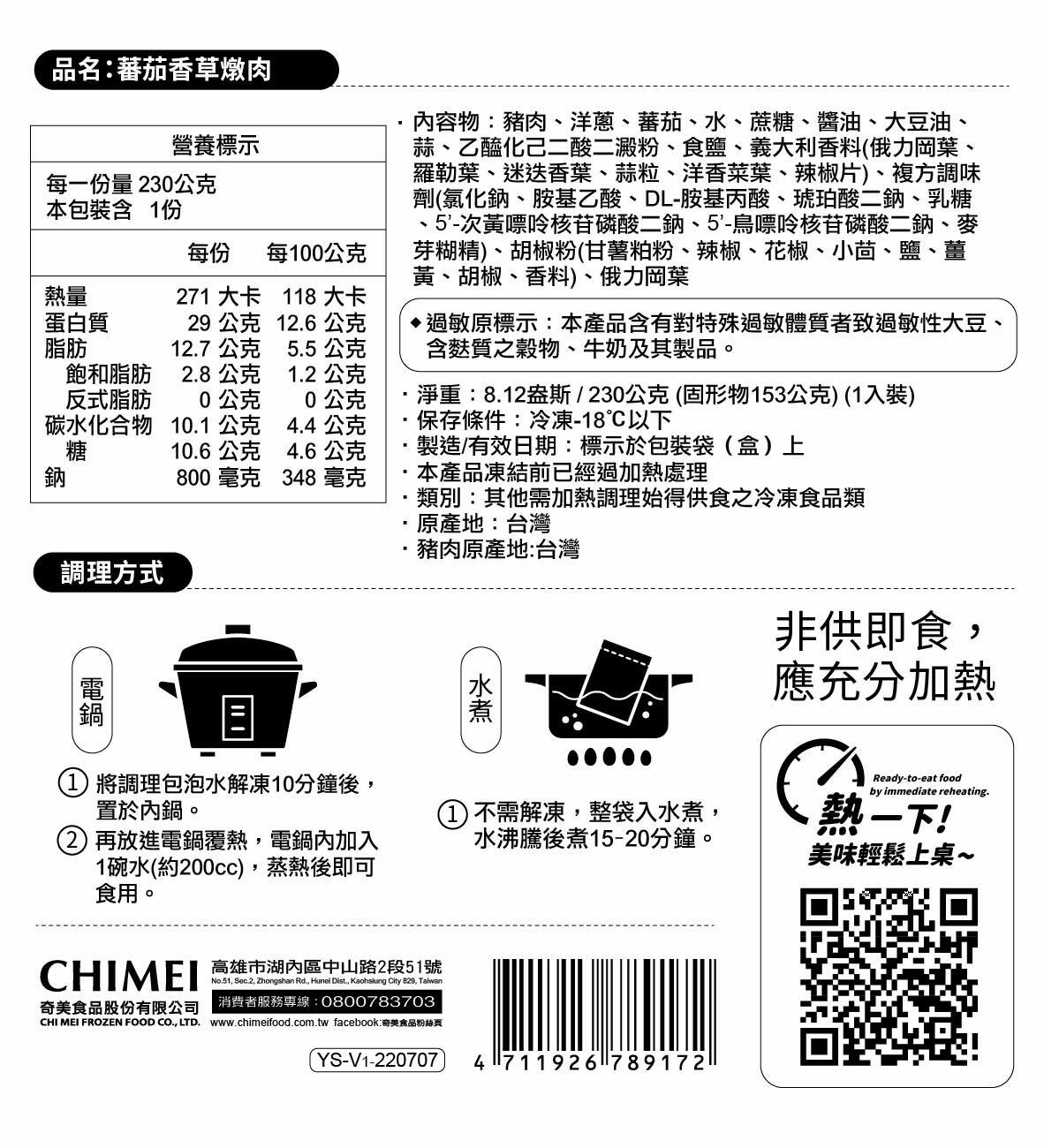 • 奇美精緻調理包 加熱即食 大廚料理輕鬆上桌