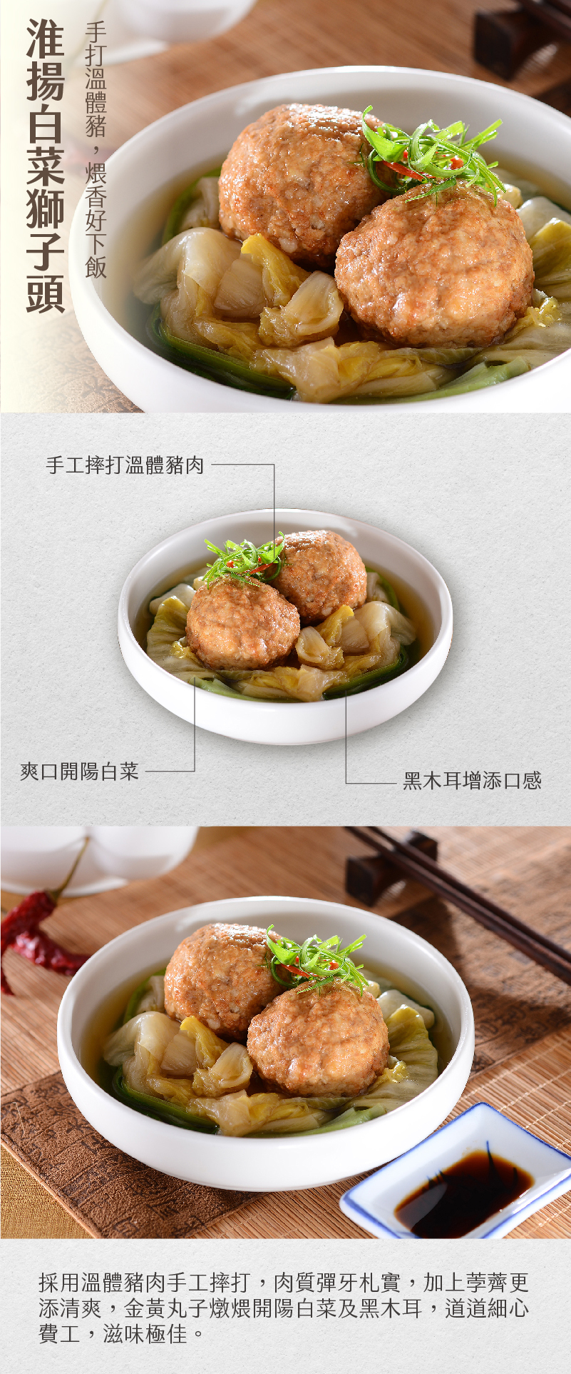 • 採用溫體豬肉手工摔打 肉質彈牙扎實