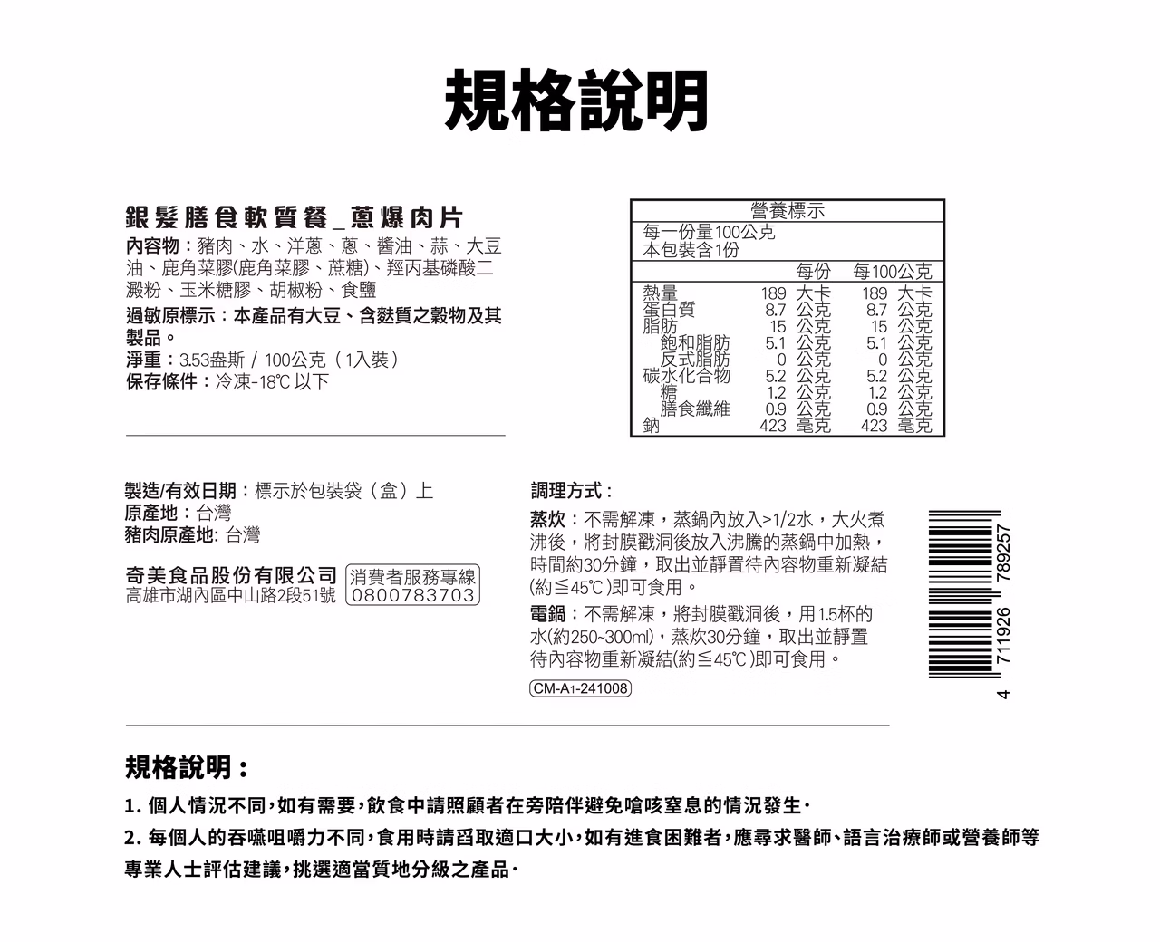 • 銀髮友善食品,最暖心的銀髮軟質餐!