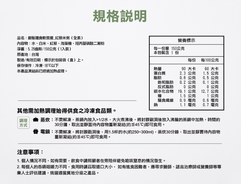 • 商品規格 : 粥150g/盒,其他口味100g/盒。