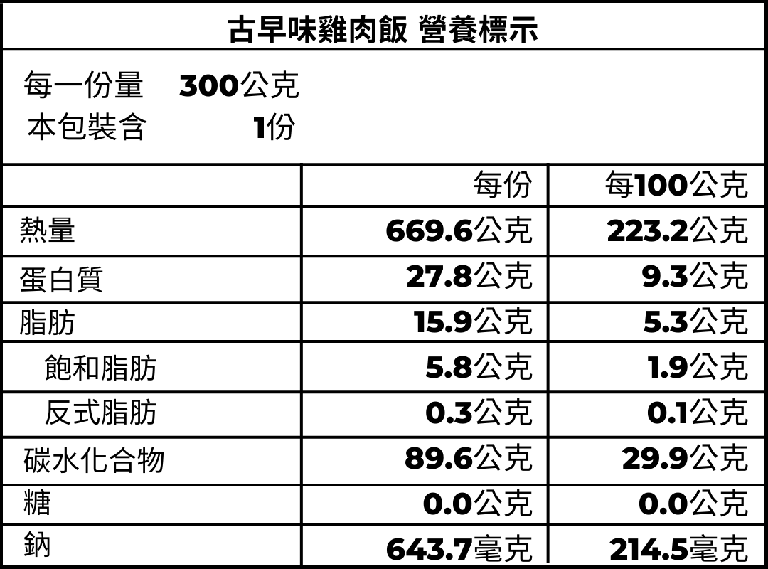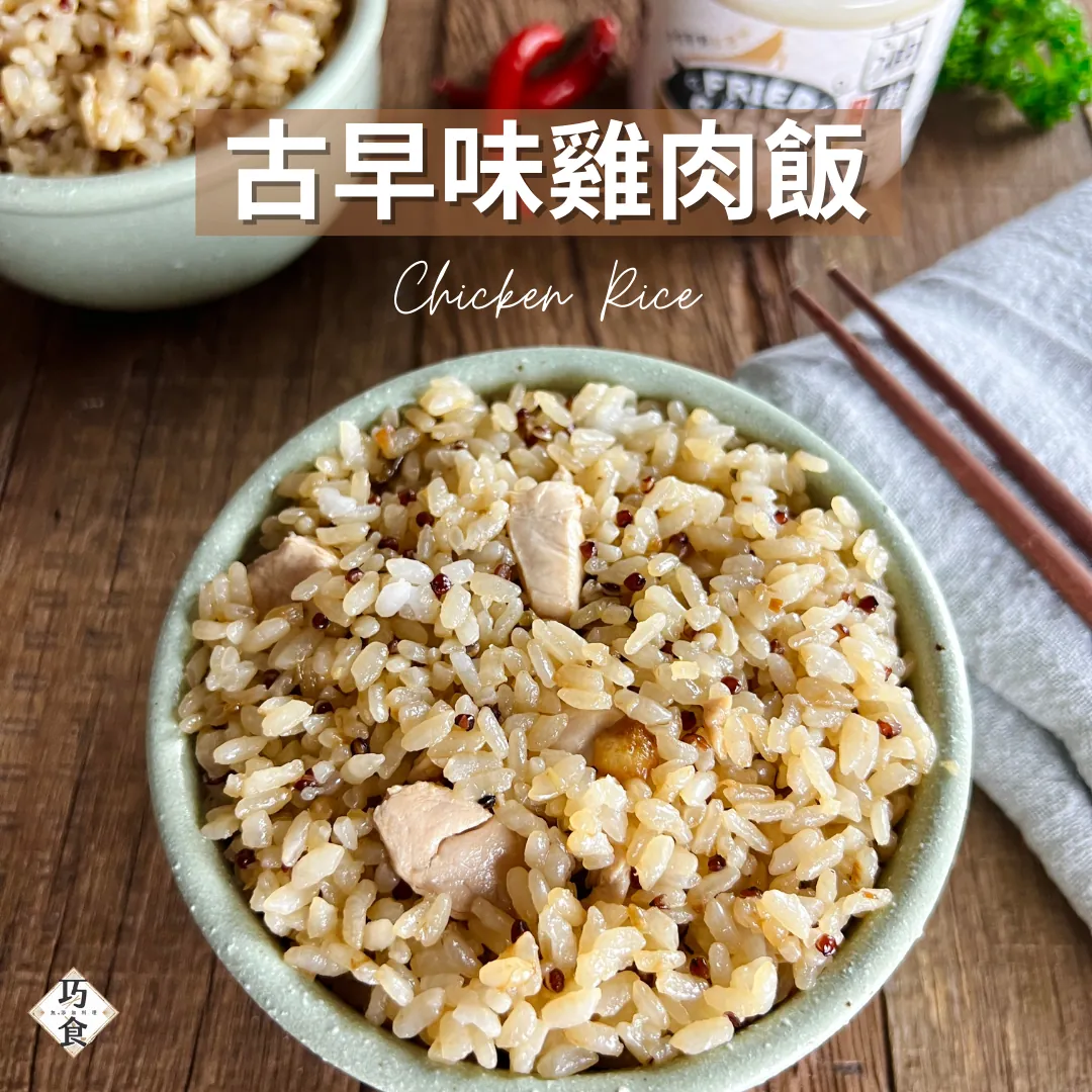 台灣冠軍越光米、國產檢驗合格雞肉、紅藜麥、自煉台灣可溯源檢驗合格豬油、紅蔥頭、古法釀造醬油(黑豆、水、鹽、糖、甘草)、鹽巴