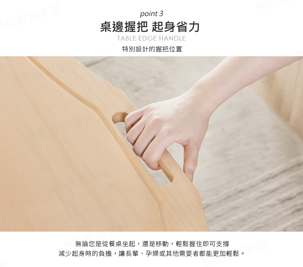 ※圓弧設計,椅坐可更貼近桌緣