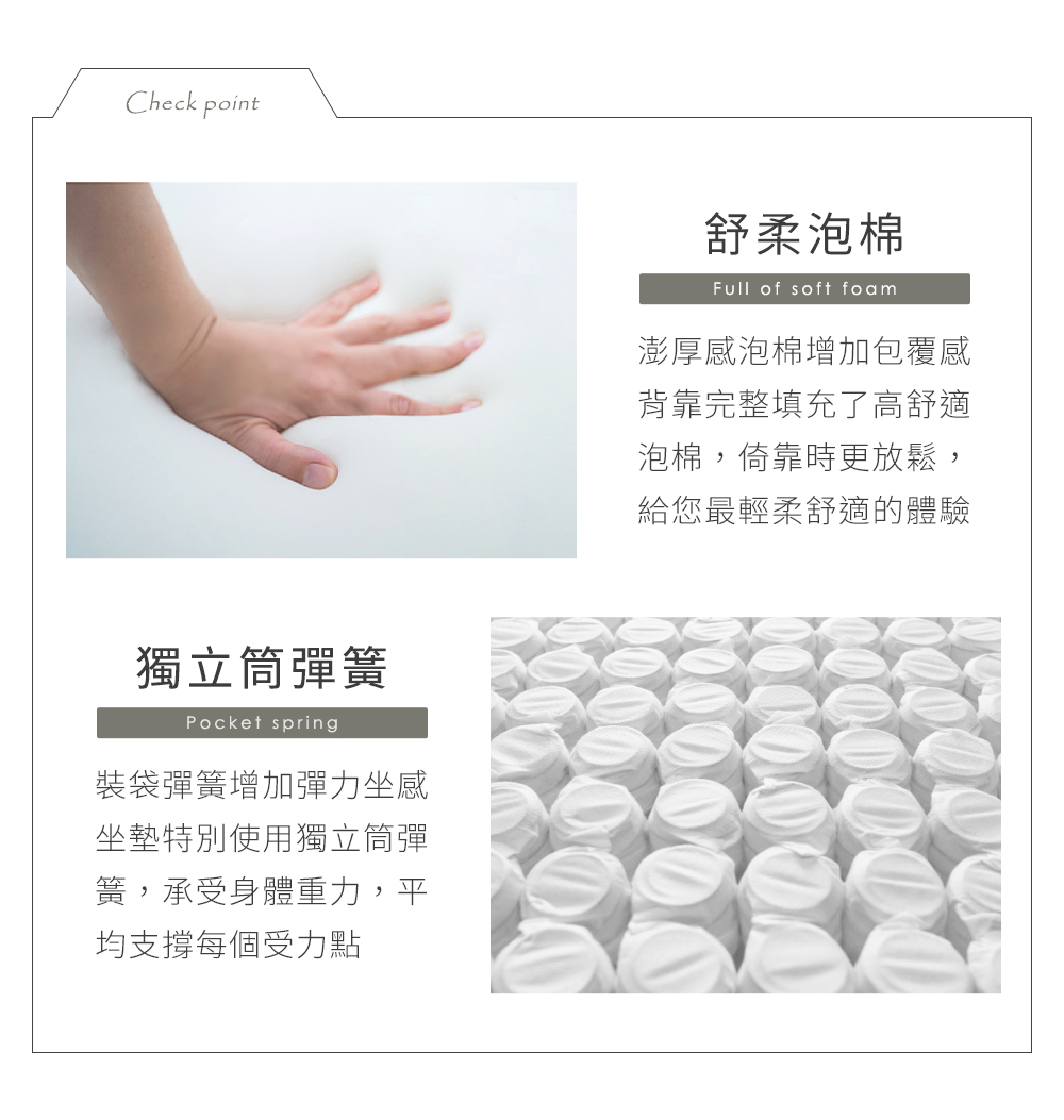 選用舒柔泡棉內材,增加包覆感更放鬆
