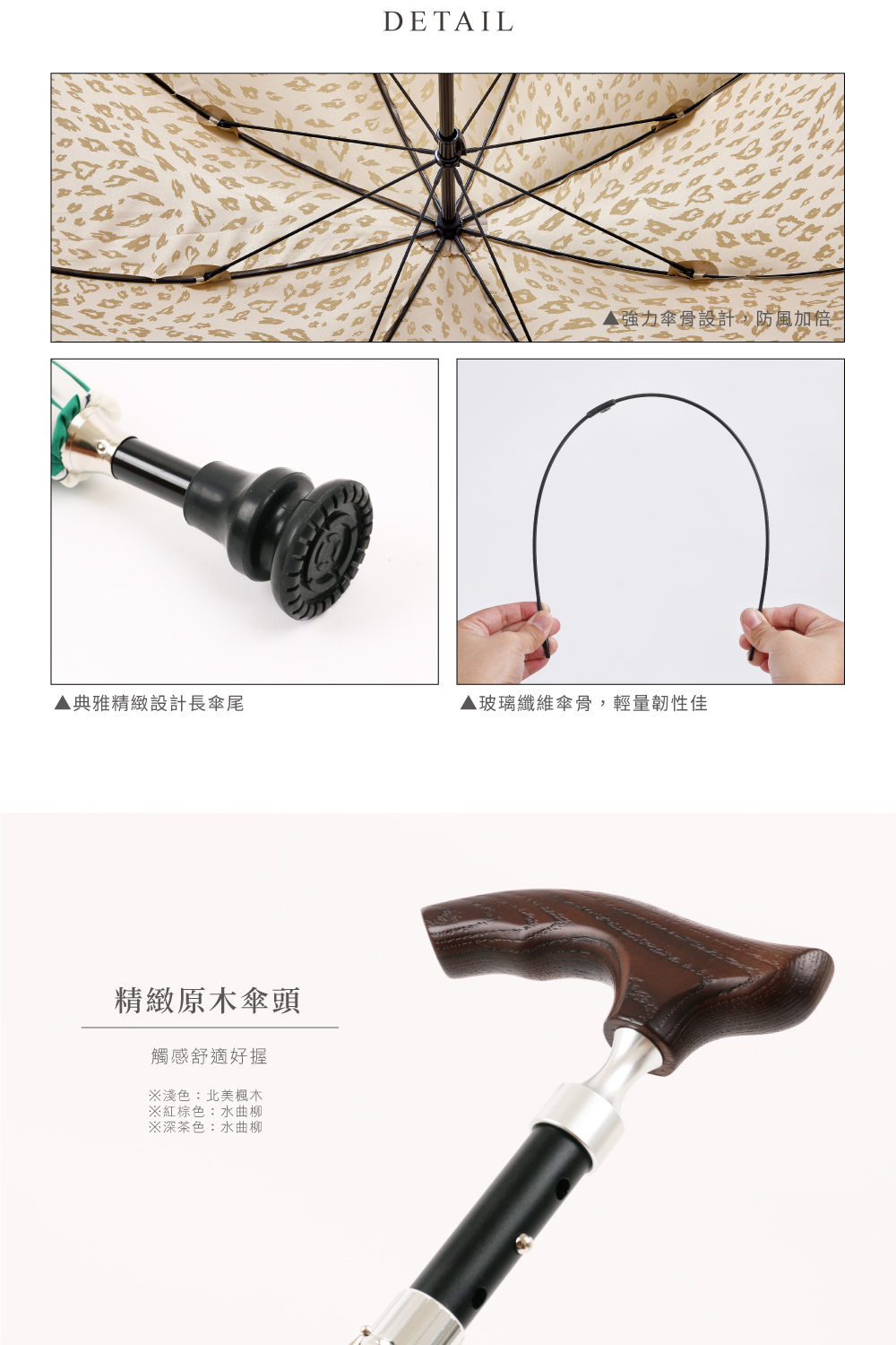 【品名】輕巧可調休閒傘 手開直骨傘 (原木握把)