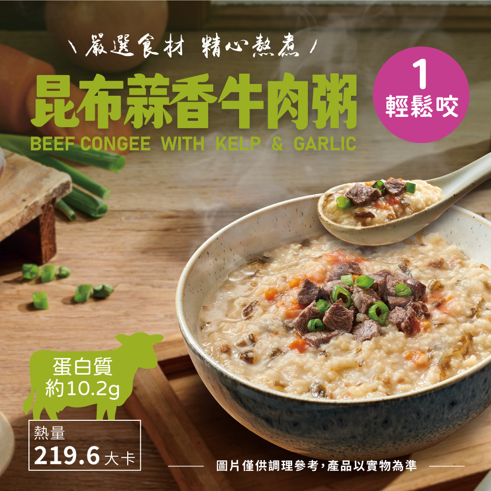 成分:水、白米、牛絞肉、海帶絲(水、食用海藻)、紅蘿蔔、洋蔥、醬油(水、非基因改造脫脂大豆片、小麥、食鹽)、蒜、玉米 、L-麩酸鈉、鹽、白胡椒粉。