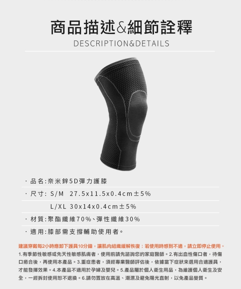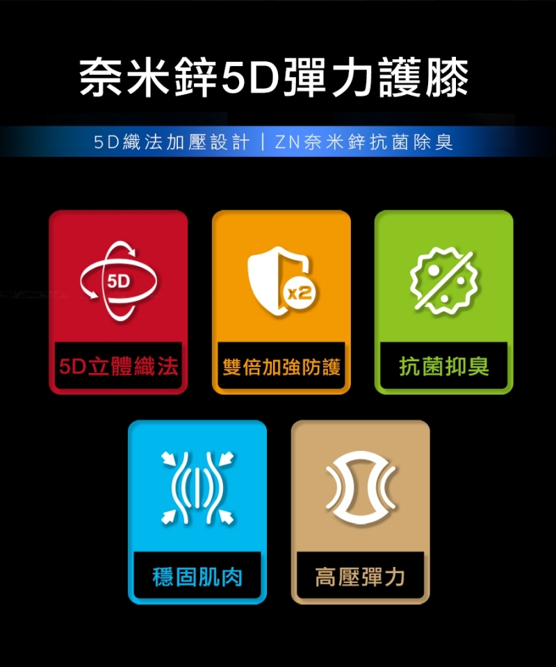 ■ 5D彈力設計,提供膝蓋全方位支撐
