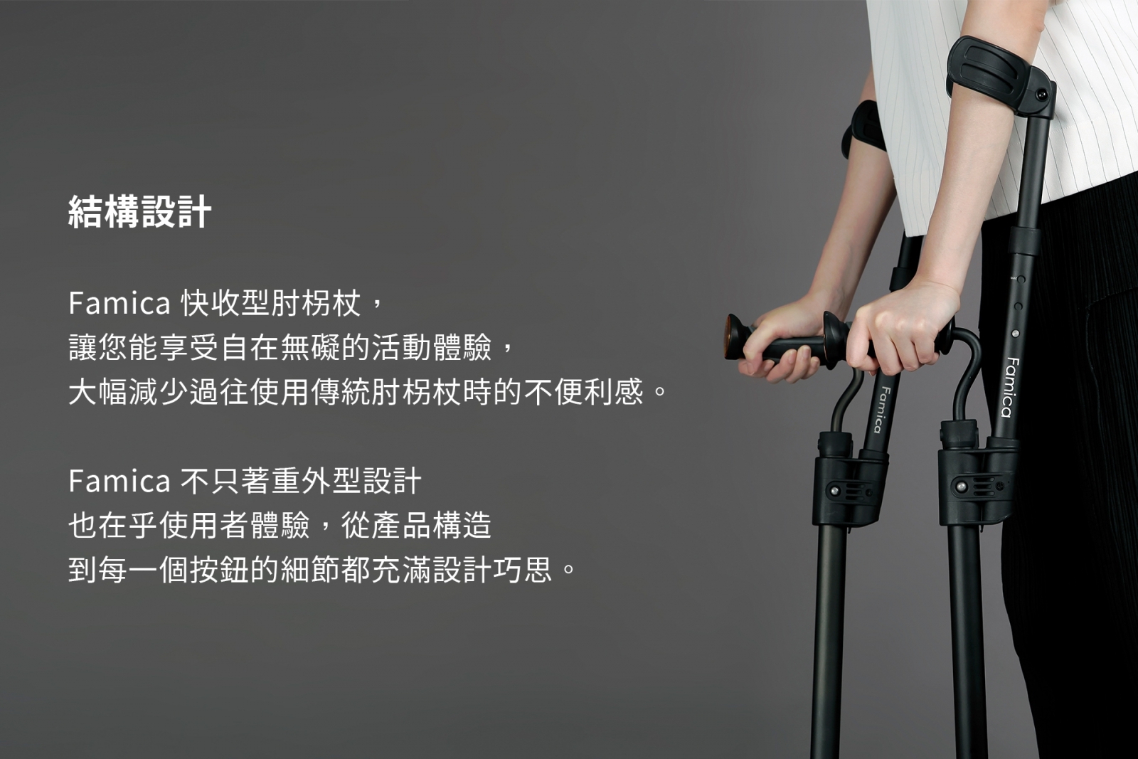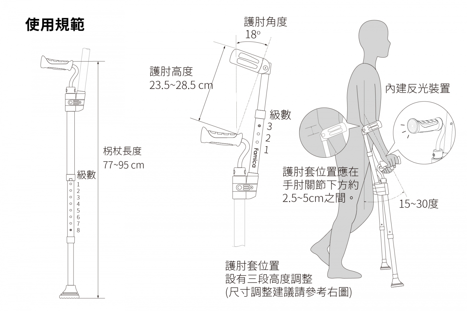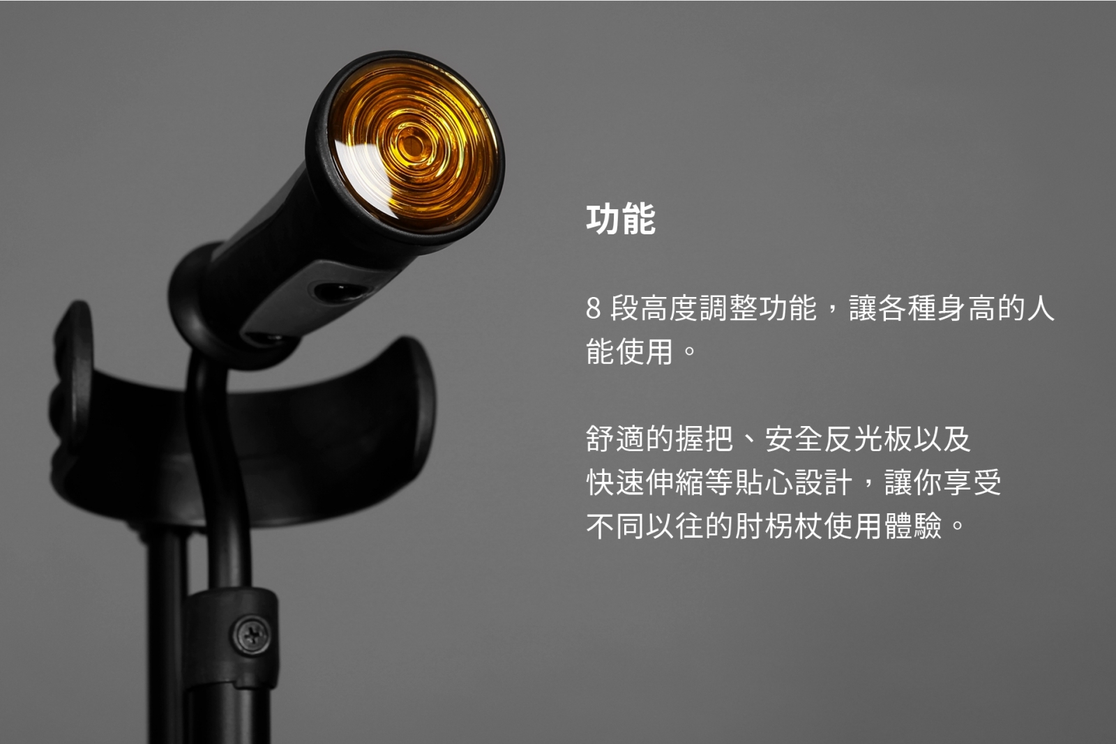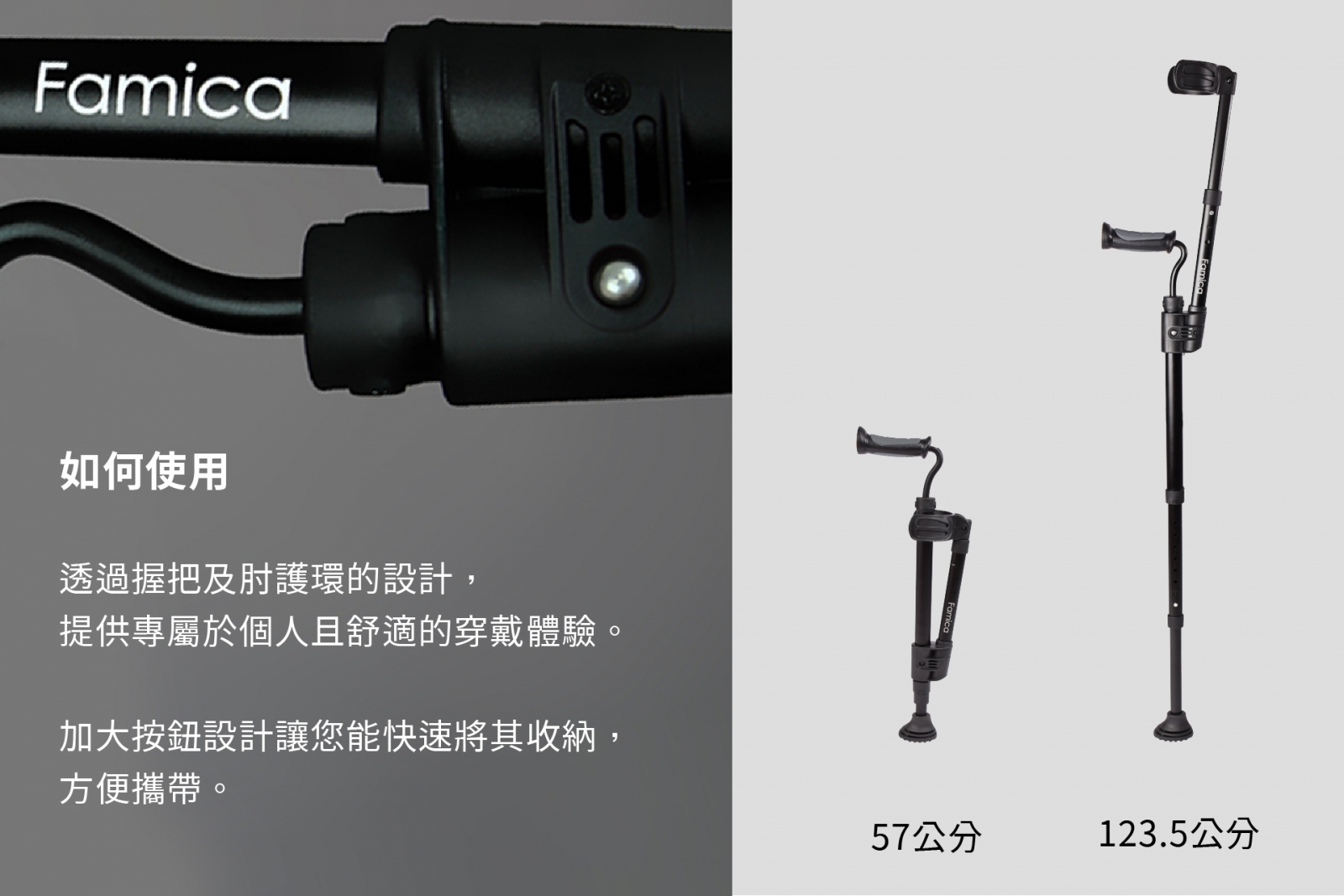 ●舒適 : 手把握材質、勾住手肘的環 (大小護肘適合不同的使用者 - 可另外加購)