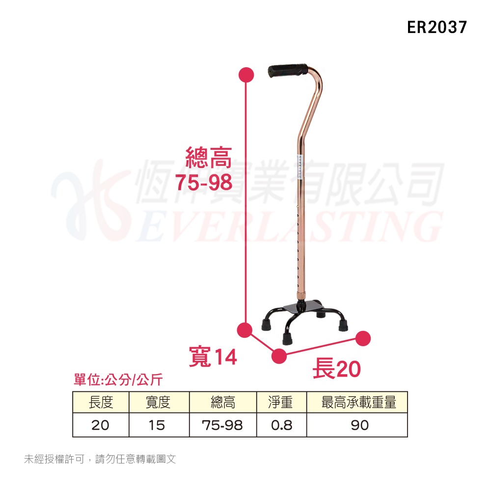 恆伸 .鋁合金四腳拐杖-問號型小爪 (ER2037)