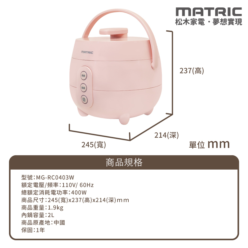 內容 : 電子鍋x1、飯匙x1、量杯x1、蒸盤x1