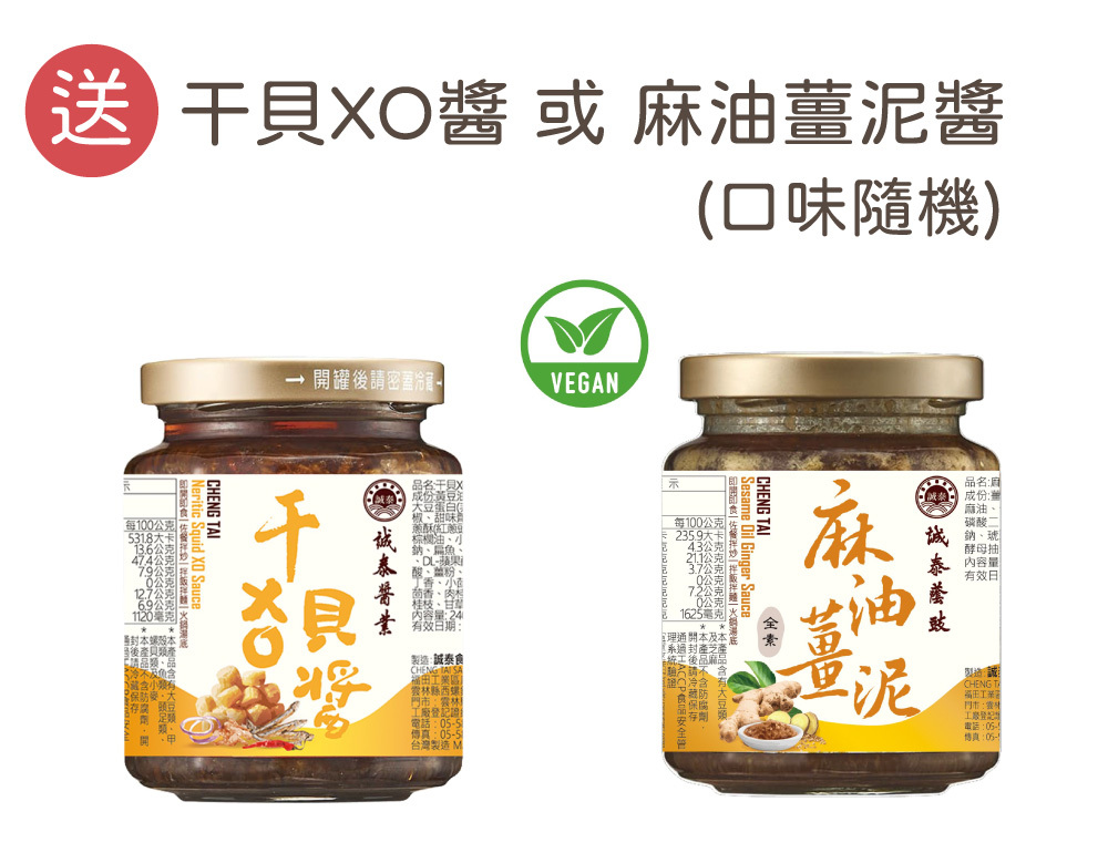 ●【送】干貝XO醬或麻油薑泥醬 (口味隨機)