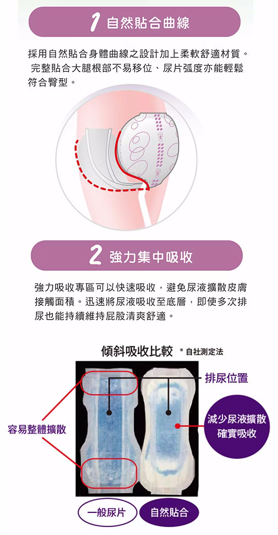 ・貼合臀部曲線設計 ・強力集中吸收 ・立體防漏側邊