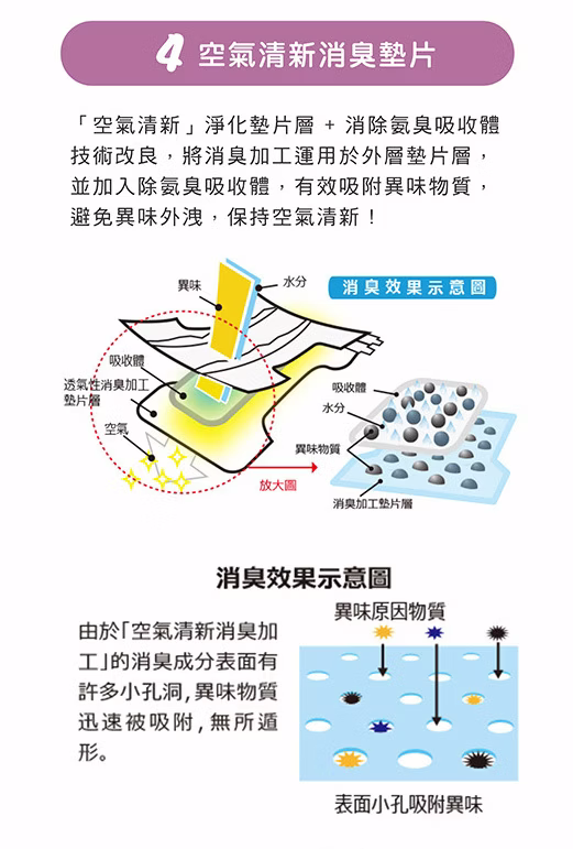 材質成分:表層/聚稀烴不織布;吸水層/棉狀紙漿、吸收紙、高分子吸收體;防水層/聚乙烯薄膜;黏接材質/苯乙烯彈性體;伸縮材質/PU;外包裝/聚乙烯