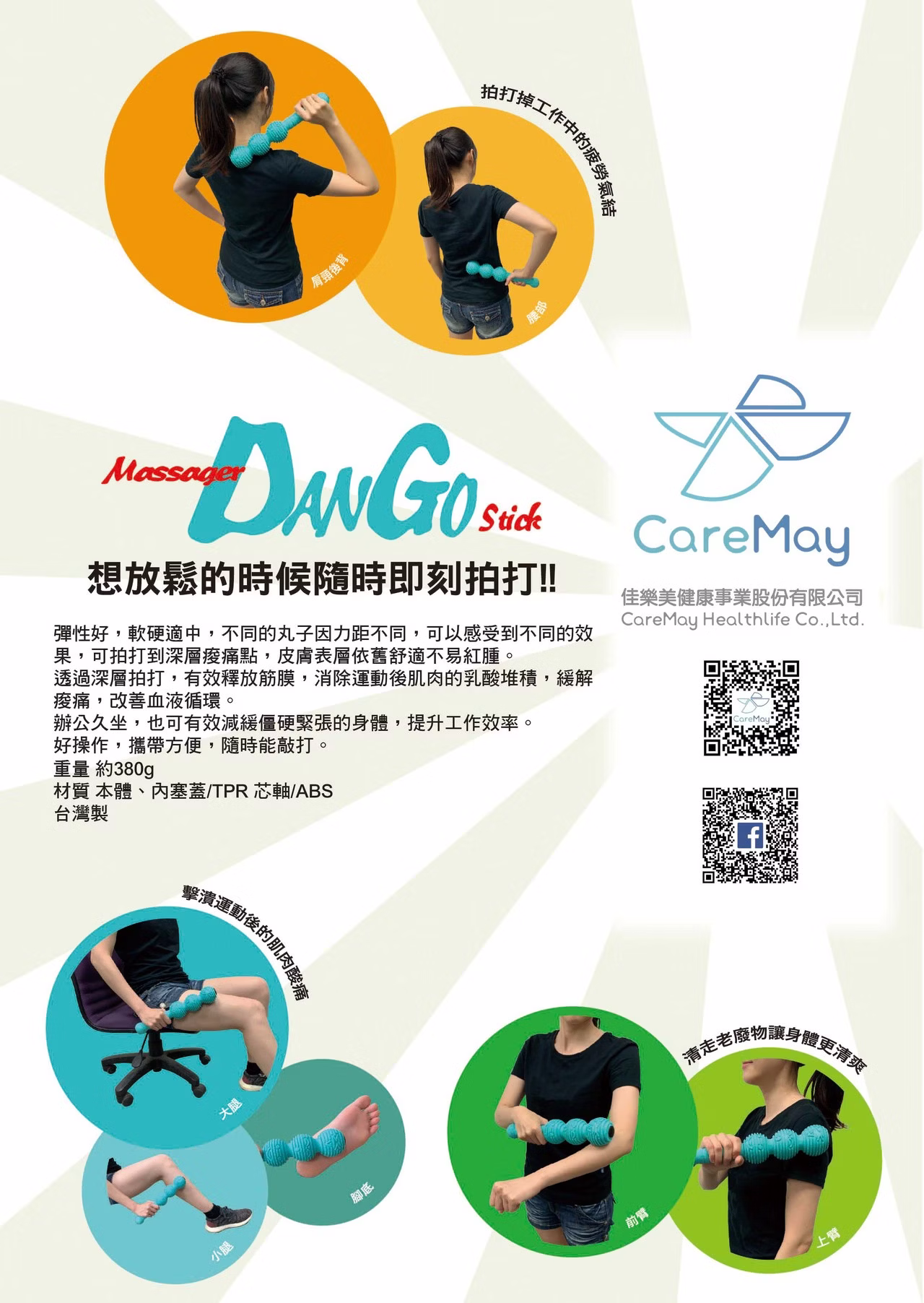 輕拍肩膀/腿部放鬆壓力,舒適按摩便利性佳。