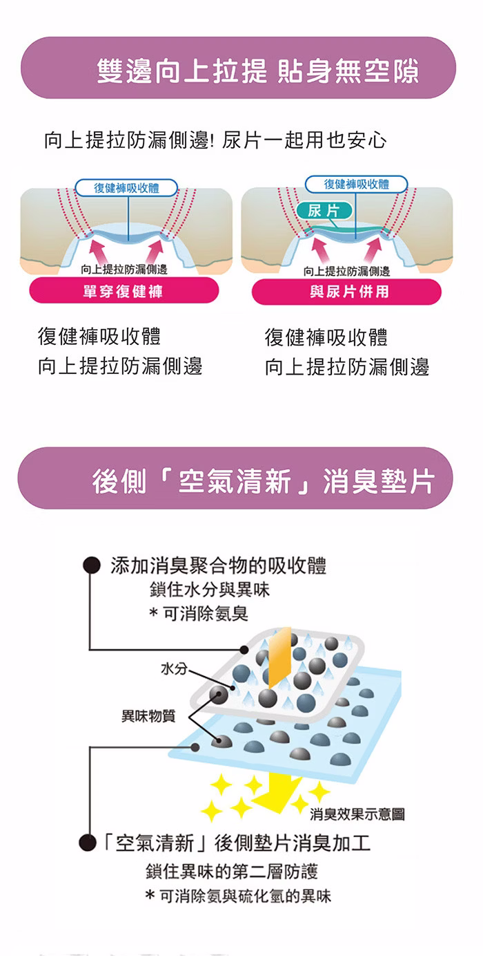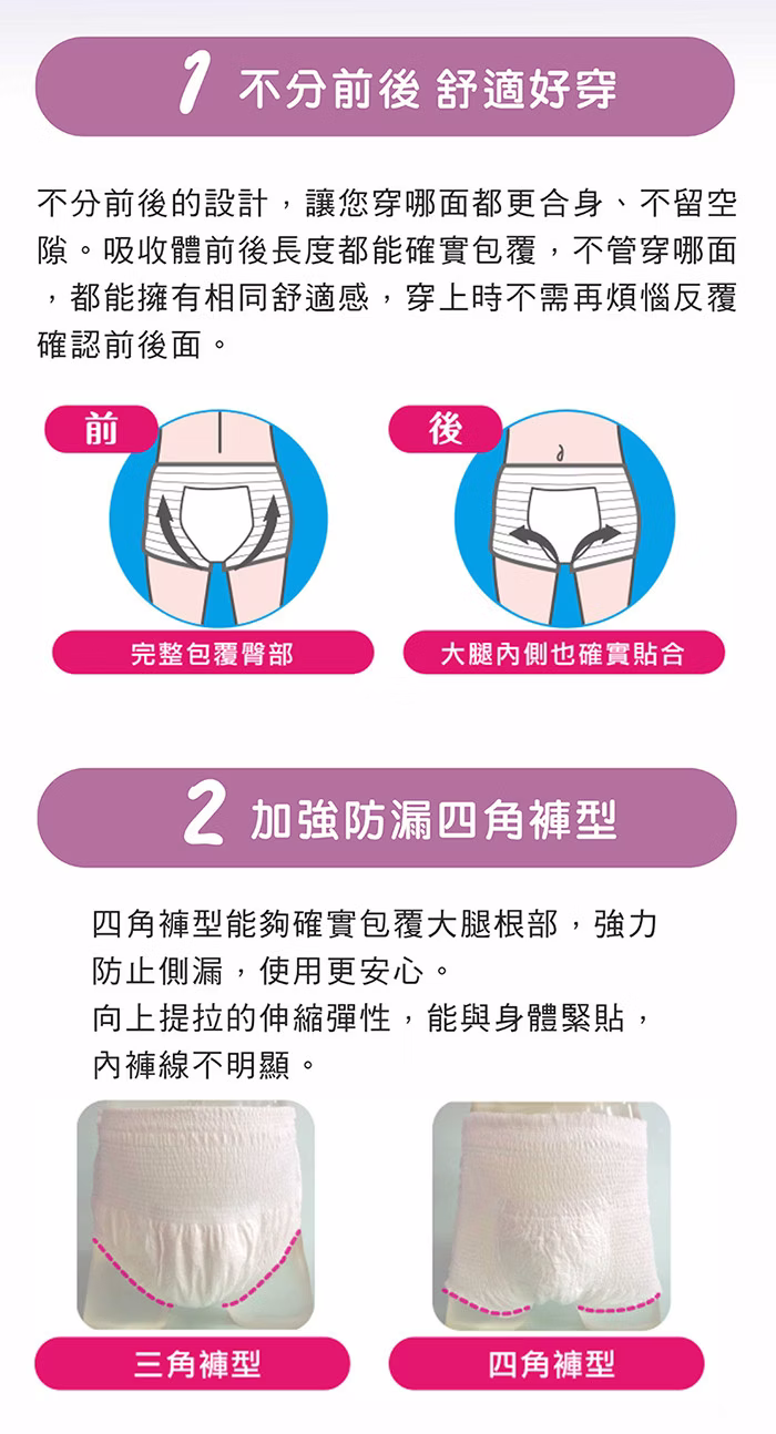 四角褲 舒適防漏 ・吸收量4~5回 ・單穿或使用〔自然貼合尿片〕