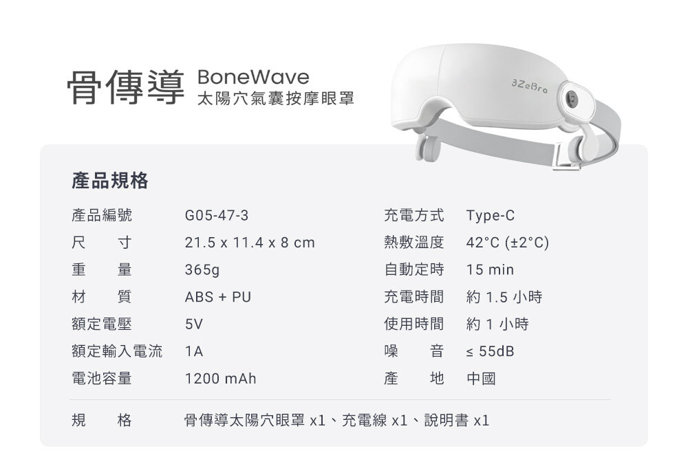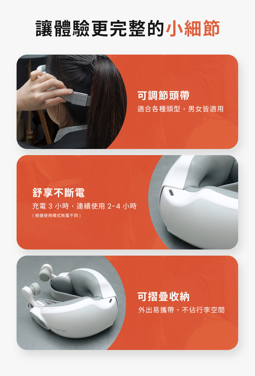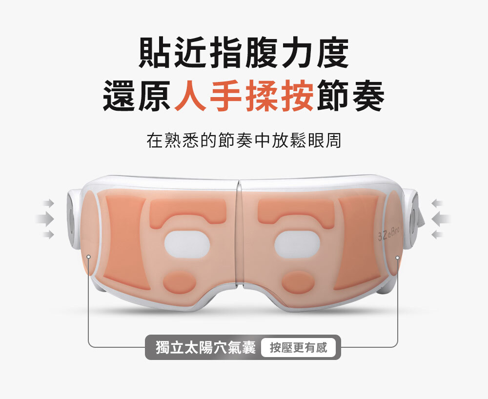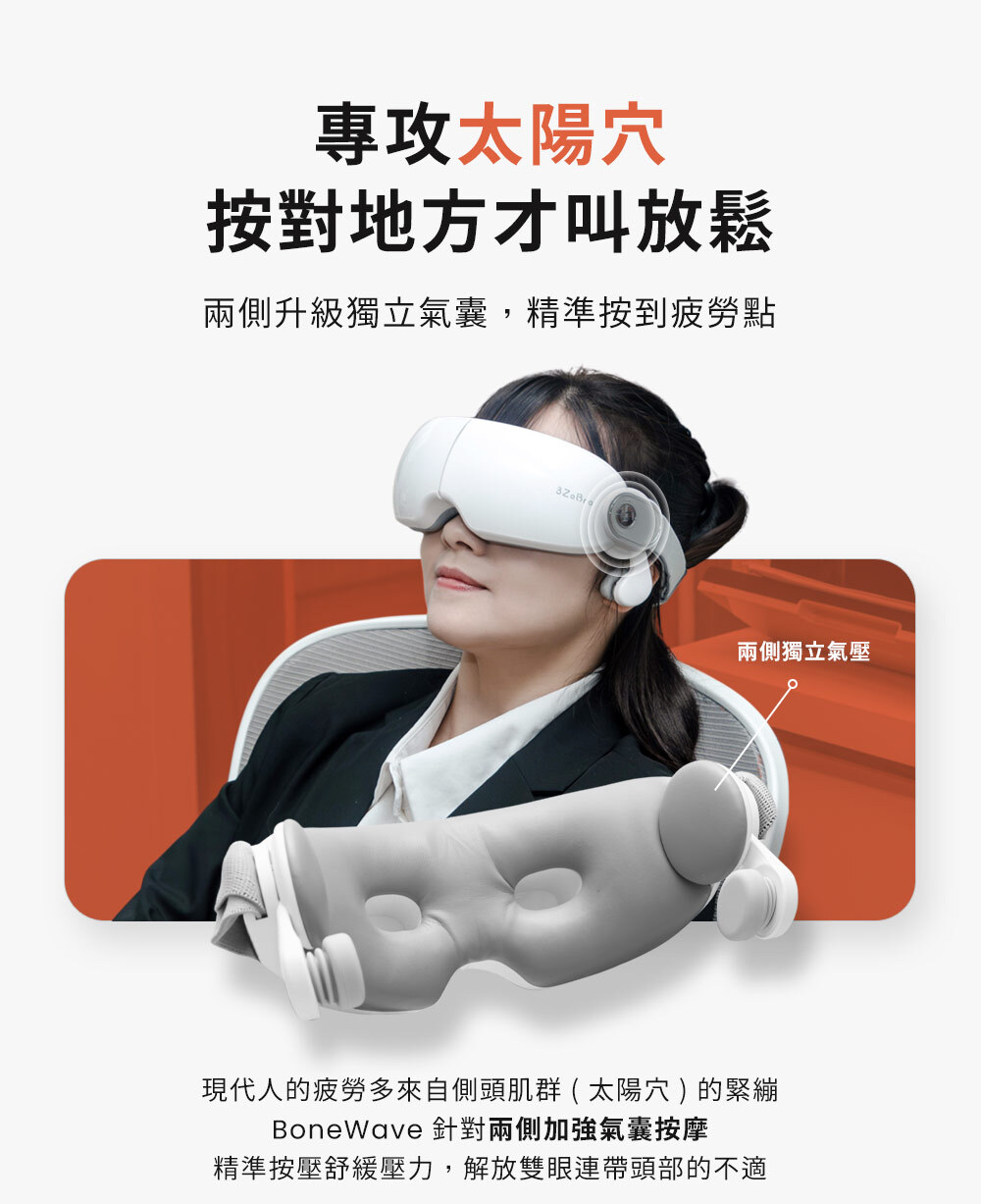 ❷ 兩側獨立氣囊,太陽穴按壓更到位