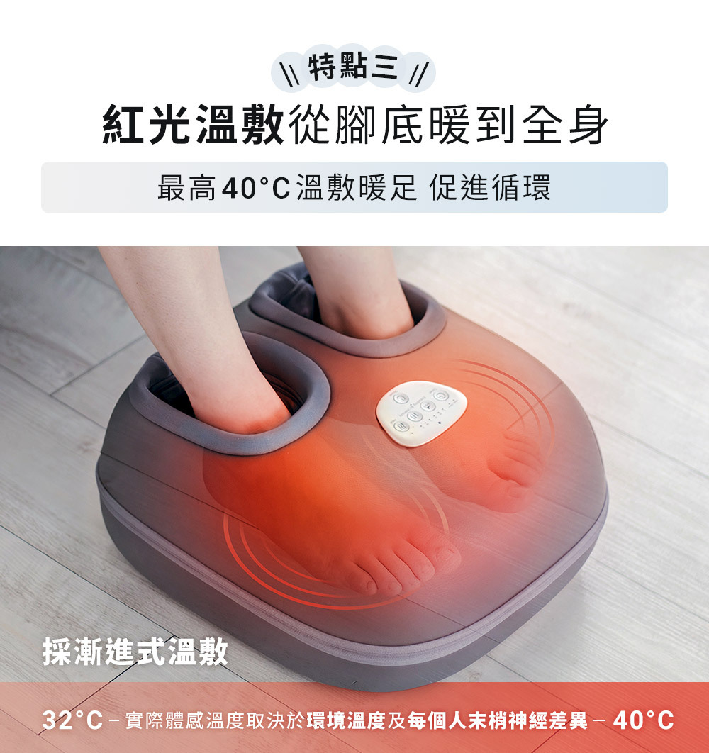 1.最高 40°C 溫敷舒緩,釋放一整天足部壓力