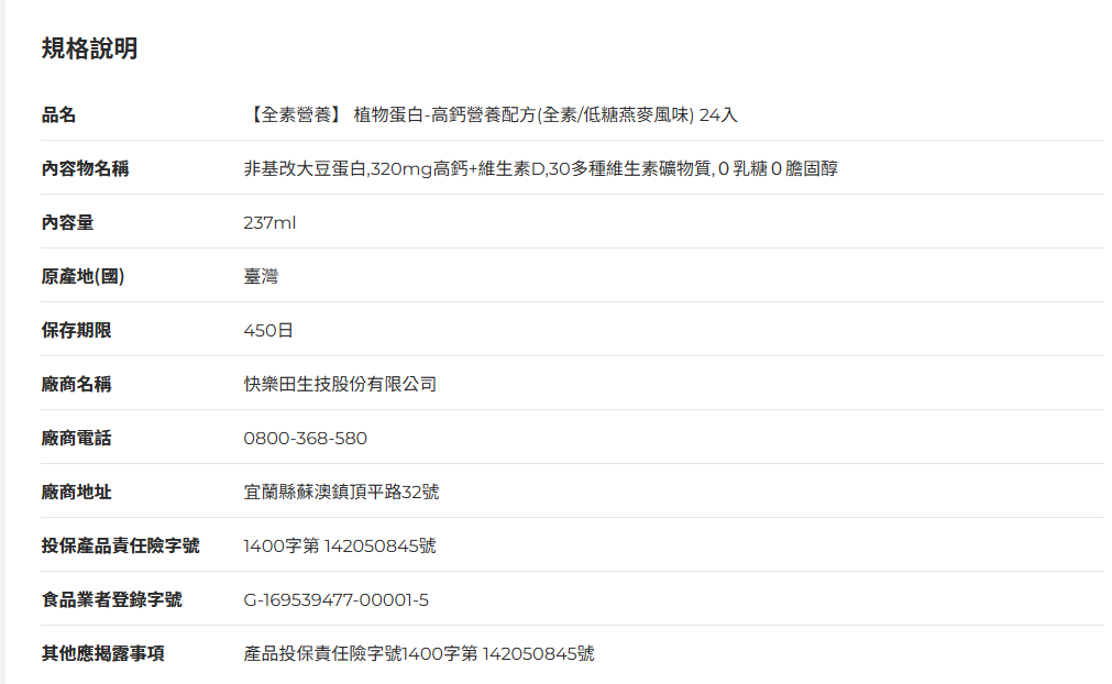 植物蛋白全素高鈣配方 (低糖/全素/燕麥風味)
