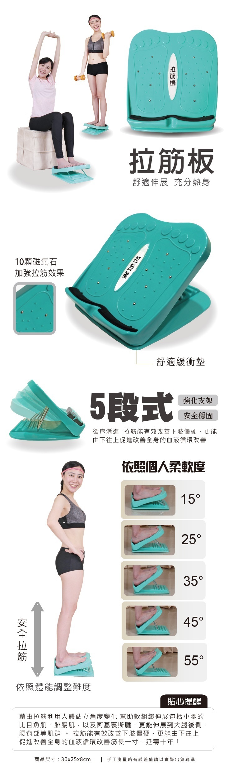 ✓ 5段拉筋=15度到55度可依體能調整難度