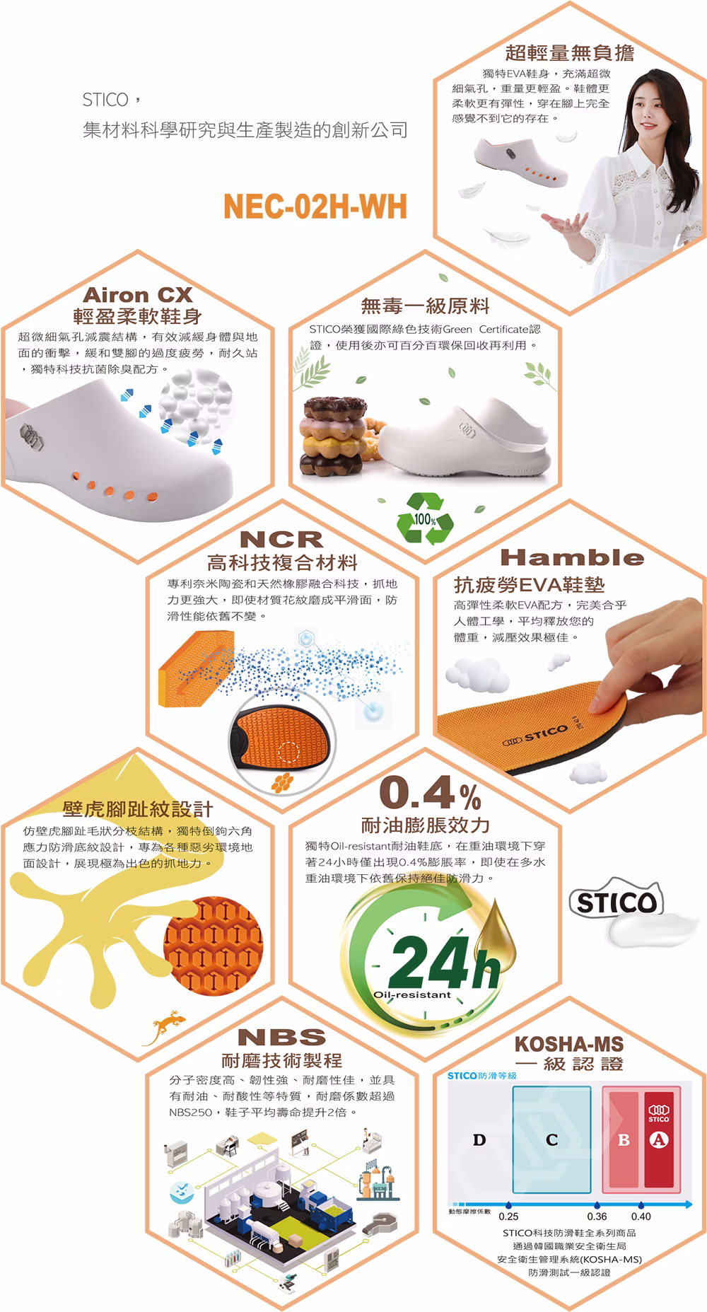 ●專為醫護人士設計,超耐久站舒適防滑工作鞋