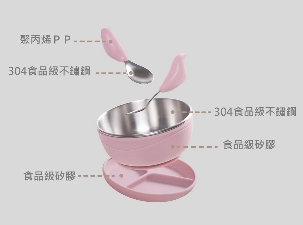 一個學習碗 (不鏽鋼內碗+矽膠防燙外碗)