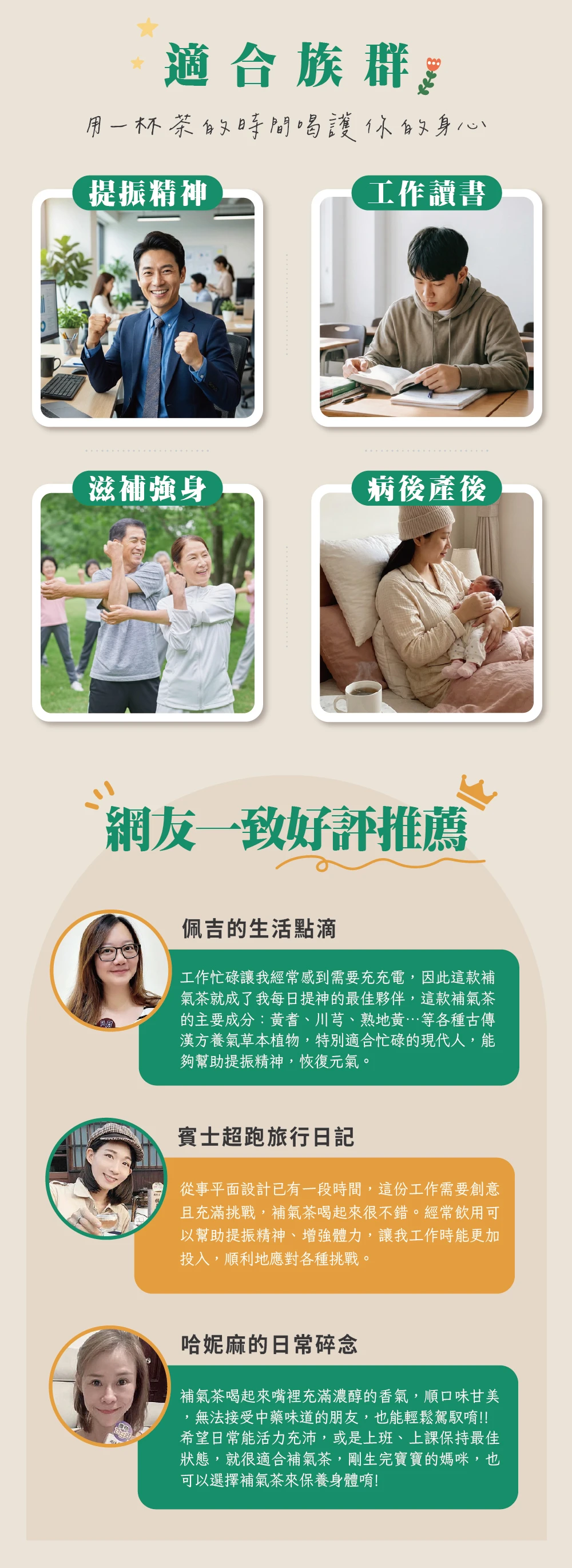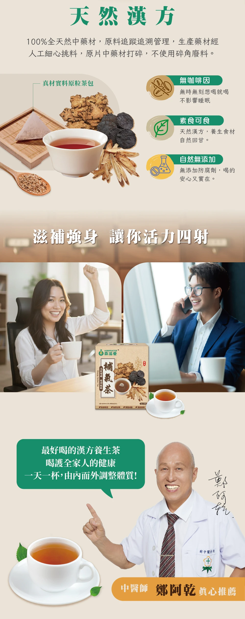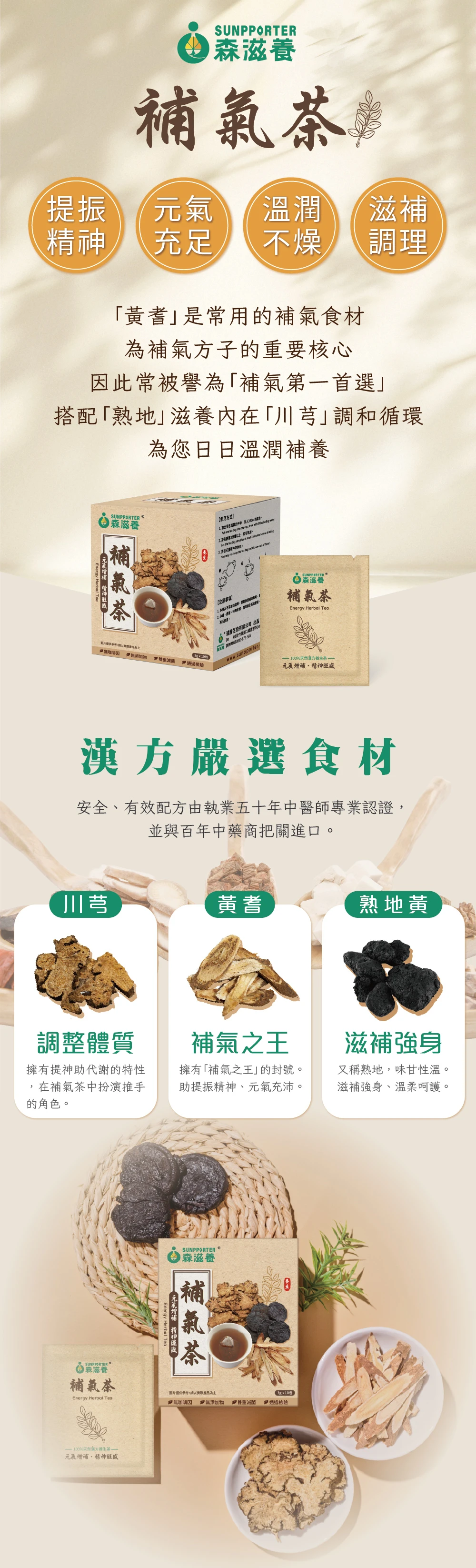 嚴選「補氣第一首選-黃耆」添加川芎、熟地等古傳漢方養氣草本植物,給您溫和能量補給,可滋補強身、使精神旺盛!