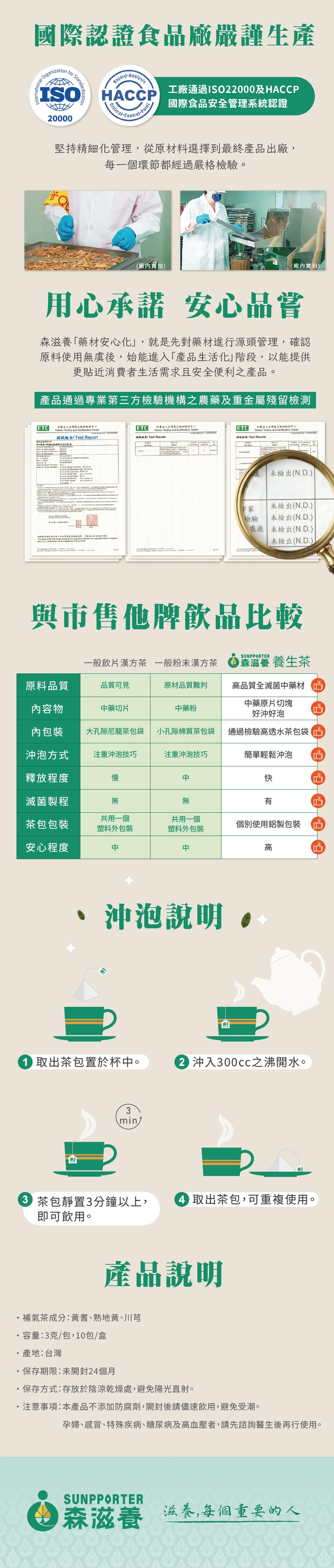 • 免熬煮,只要熱水簡單沖泡3分鐘,每包可回沖2~3次
