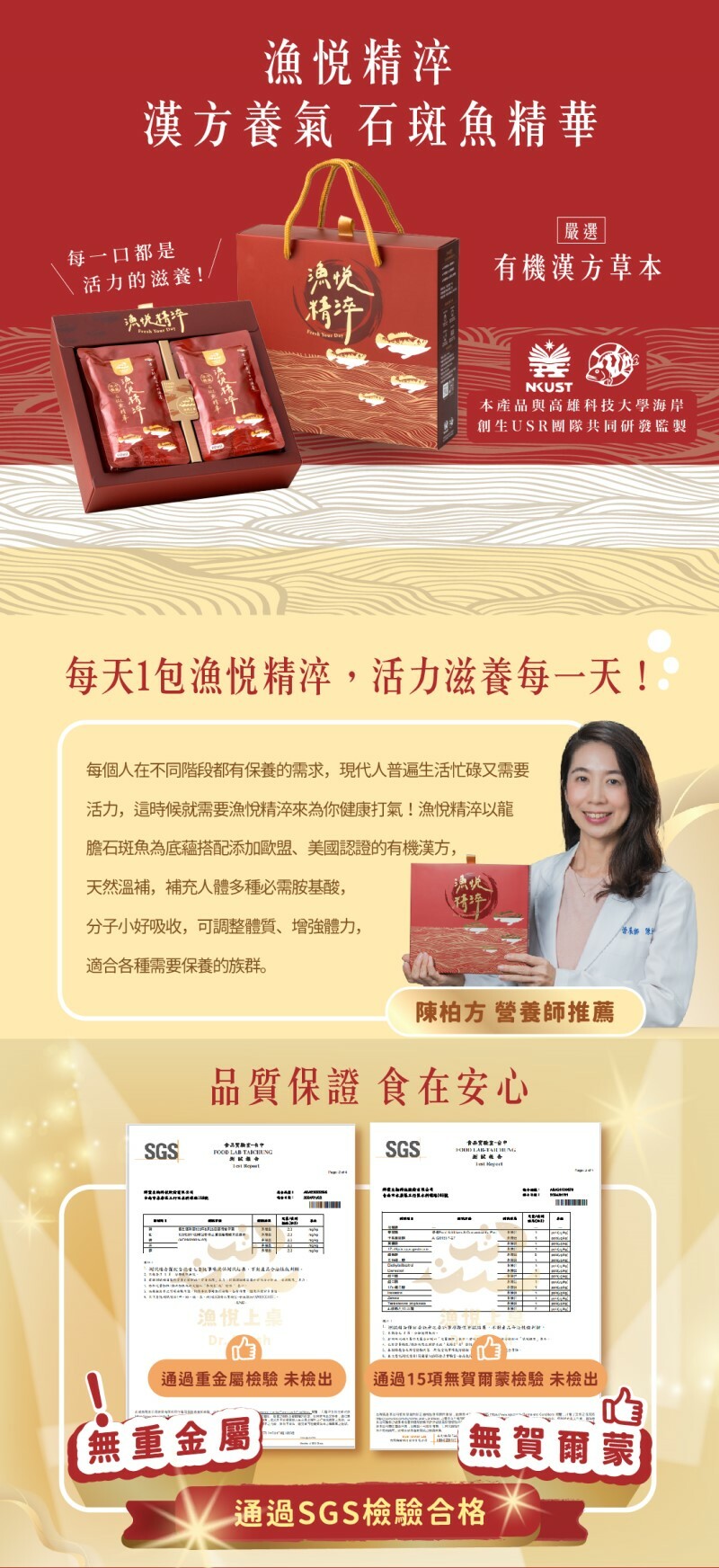 漁悦上桌-【常溫魚精】漁悅精淬 漢方養氣石斑魚精華(裸包50入)