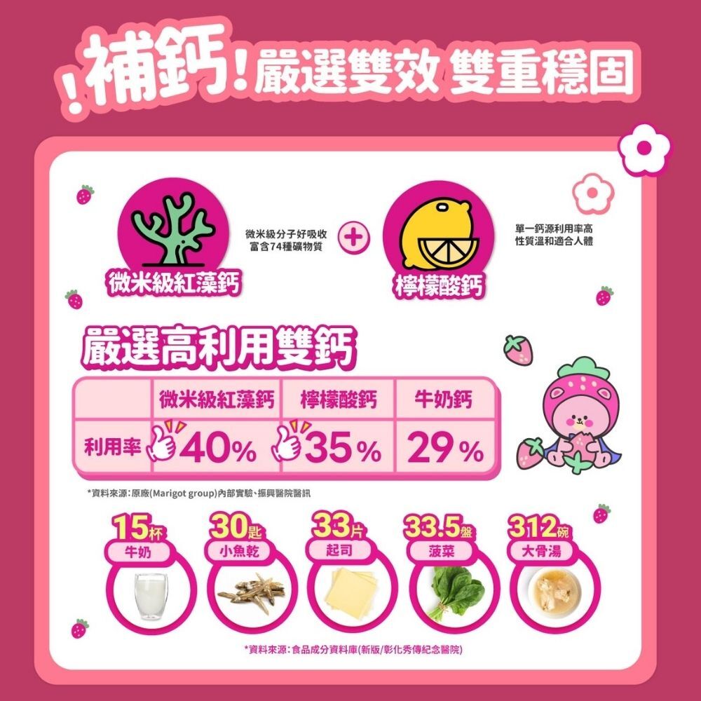 📍補鈣-微米級紅藻鈣+檸檬酸鈣,每包202毫克高鈣含量,補齊鈣質缺口