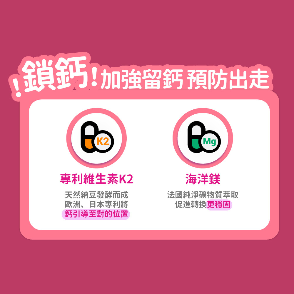 📍鎖鈣-專利維生素K2、海洋鎂,牢牢鎖住預,防鈣出走
