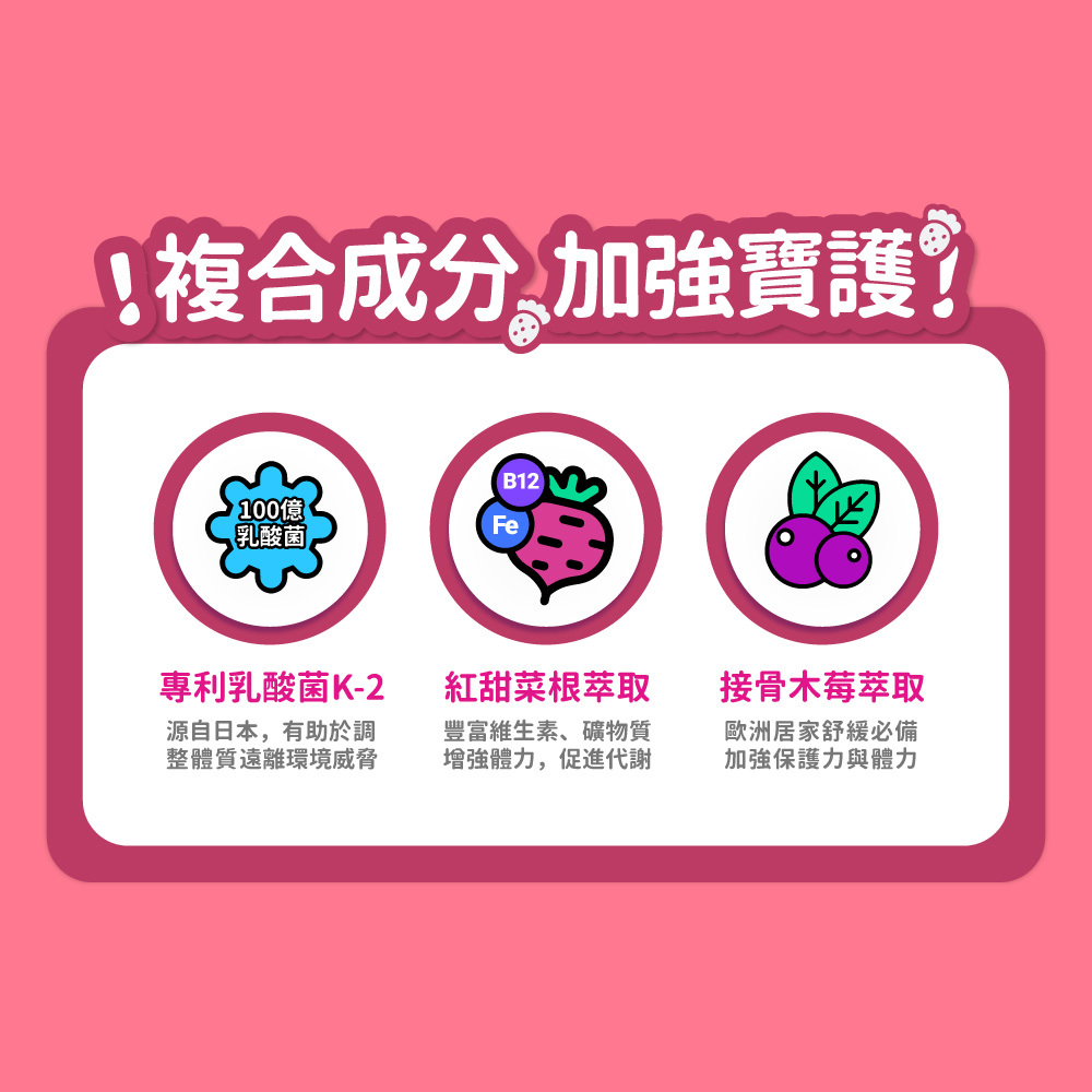 📍寶護配方-專利乳酸菌K-2+甜菜根+接骨木莓,加強寶貝保護力