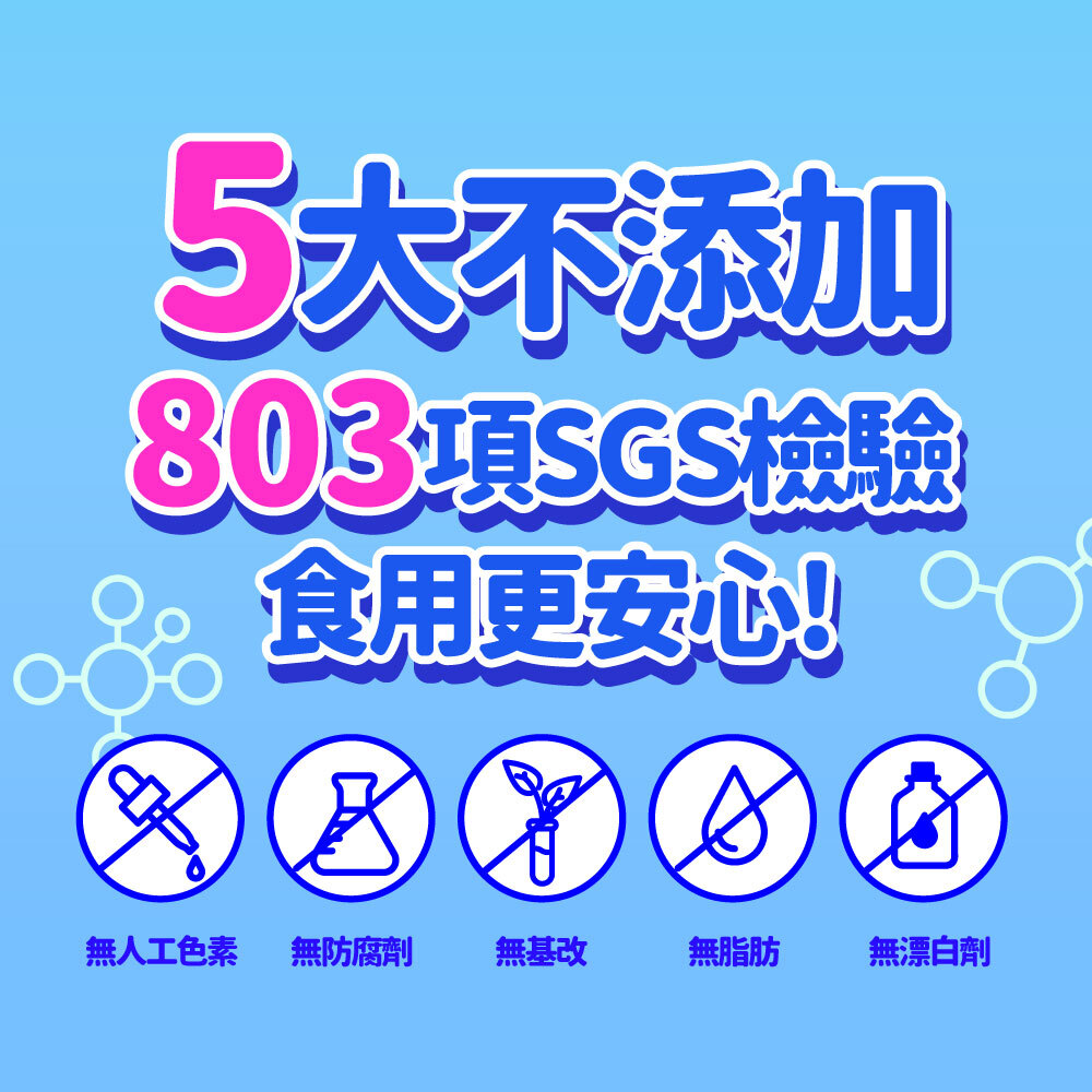 📍5大不添加,100%無人工色素,無防腐劑、無基改、無脂肪、無漂白劑,通過803項SGS檢驗