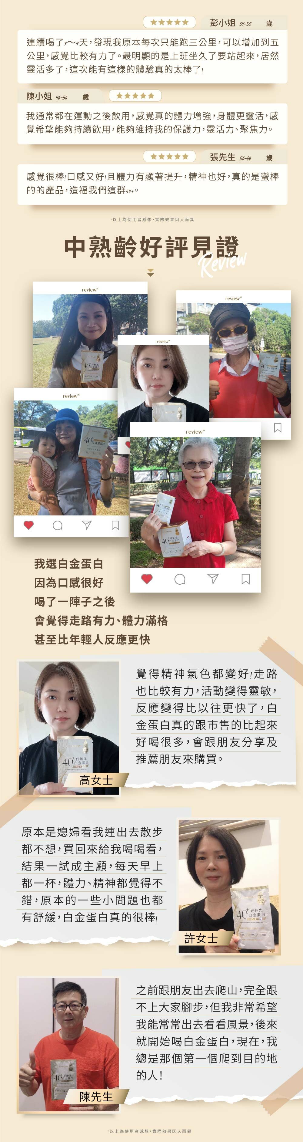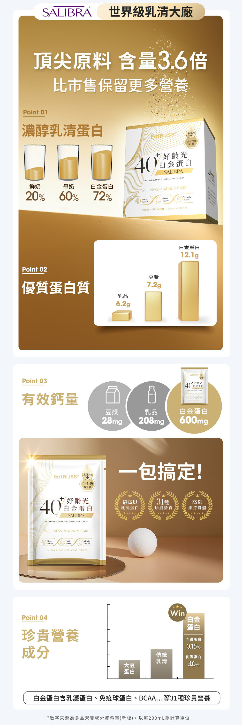 ●嚴選世界知名大廠Glanbia生產之頂級乳清蛋白,除了有高濃度優質蛋白質外,還有多種珍貴營養成分,如乳鐵蛋白、免疫球蛋白、BCAA、糖巨肽...等,是中熟齡補充營養活力最佳選擇