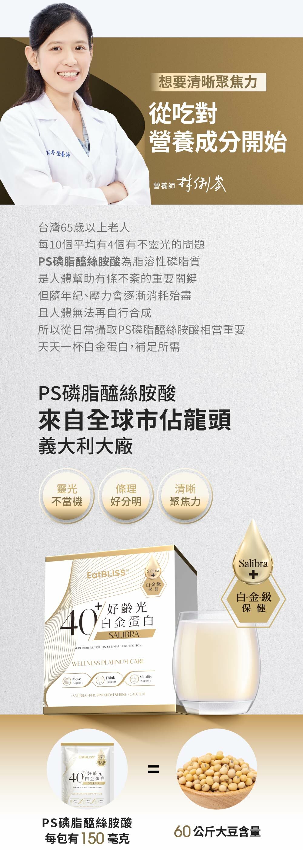 ●思緒力UP -加強傳導的【PS磷脂】完整補充40歲以上的身體營養所需,健康、活力,一包搞定!