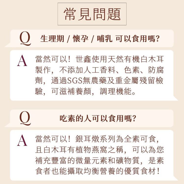 ➢ 使用台灣有機新鮮銀耳,富含天然膠質與膳食纖維