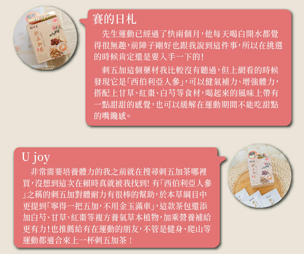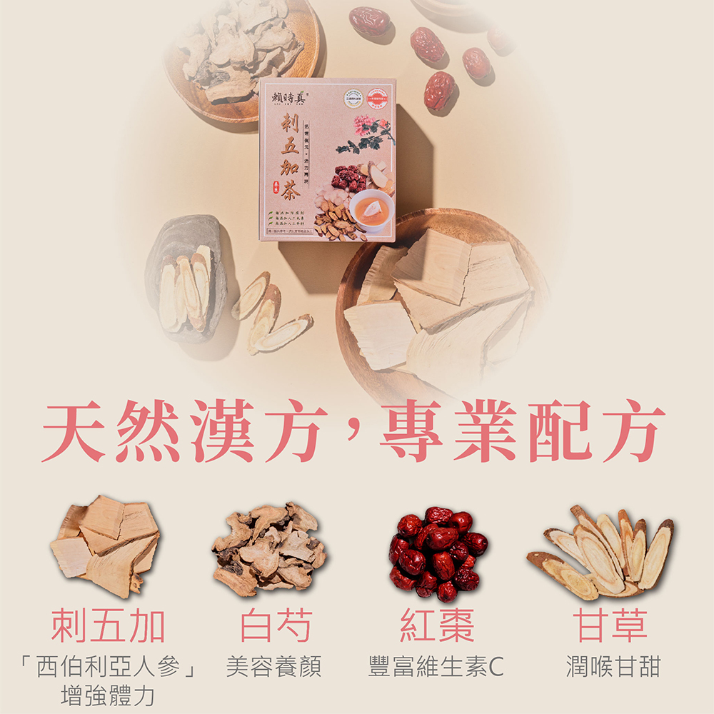 刺五加又稱「西伯利亞人參」可健氣補力、促進新陳代謝。添加白芍、甘草、紅棗等複方養氣草本植物,加乘營養補給更有力!健身、爬山有夠力!