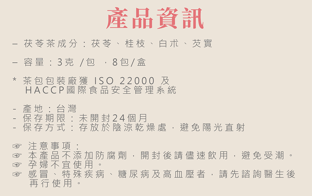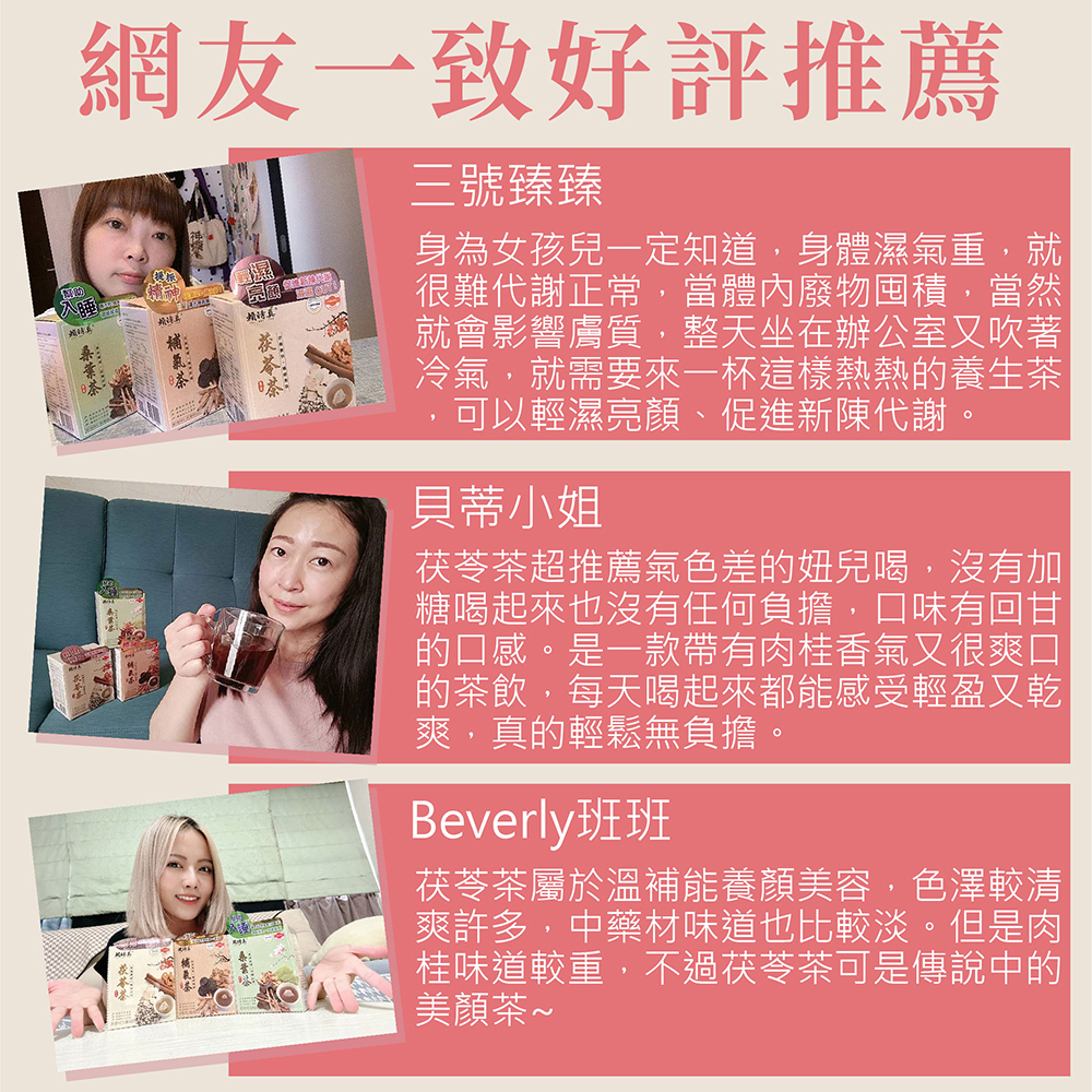 特選漢方美顏聖品 「四時神藥-茯苓」添加肉桂、白朮、芡實等複方古傳草本植物幫助促進新陳代謝、輕盈美麗。