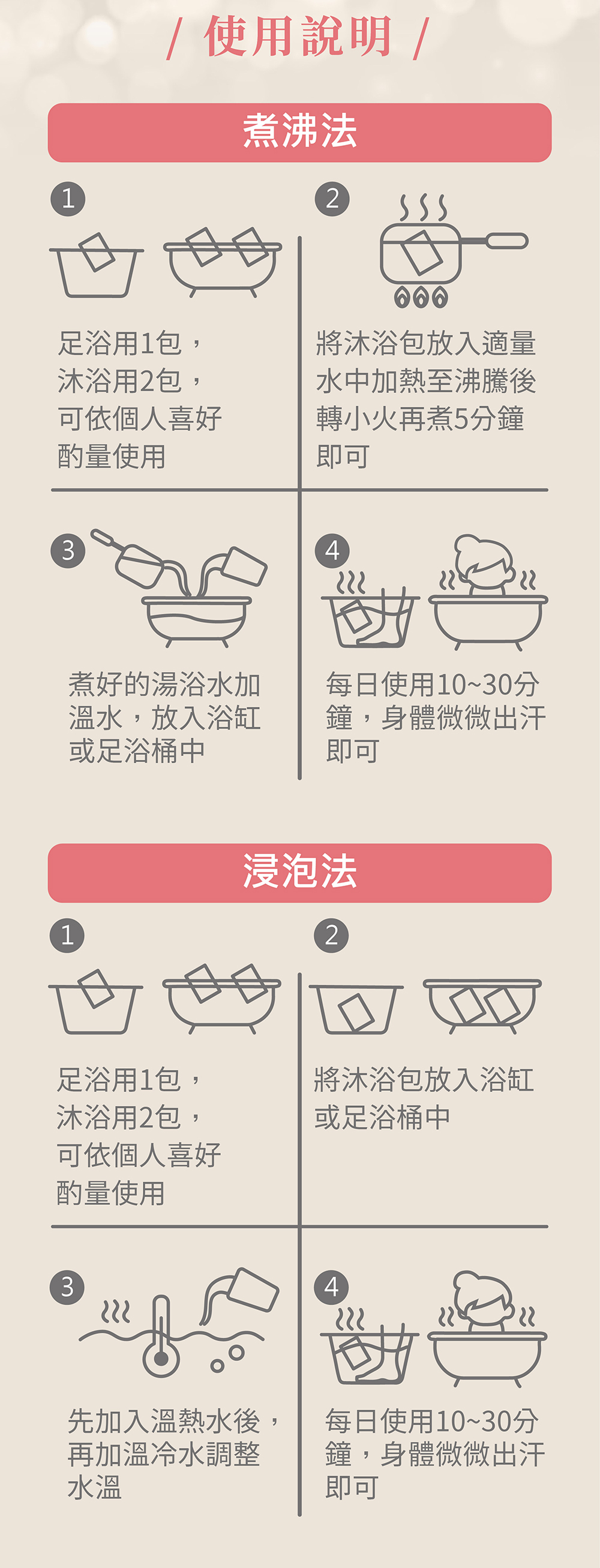 ‧ 居家旅行必備!泡腳、泡澡皆宜(泡腳放1包,泡澡放2包)