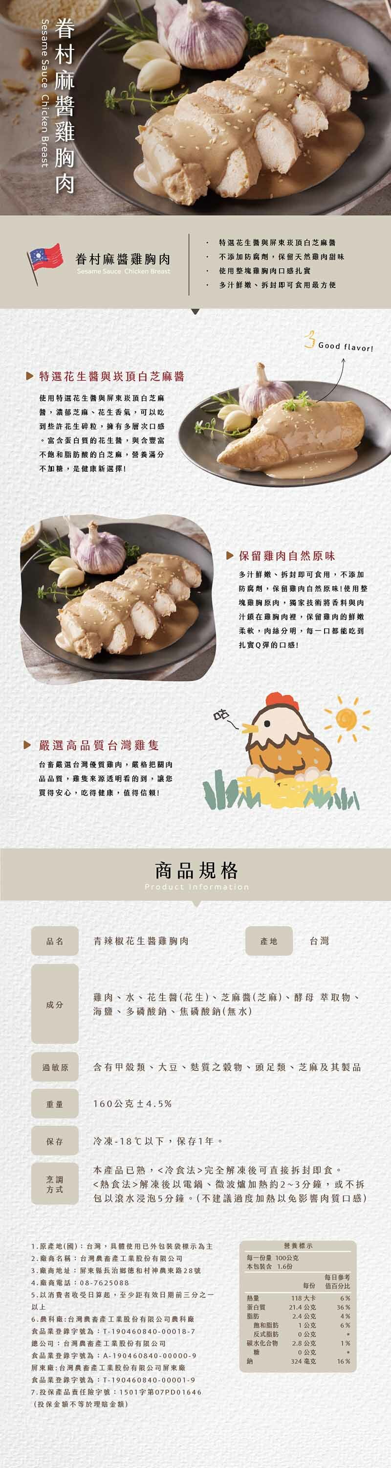 台畜-眷村麻醬雞胸肉(160g) 🐔